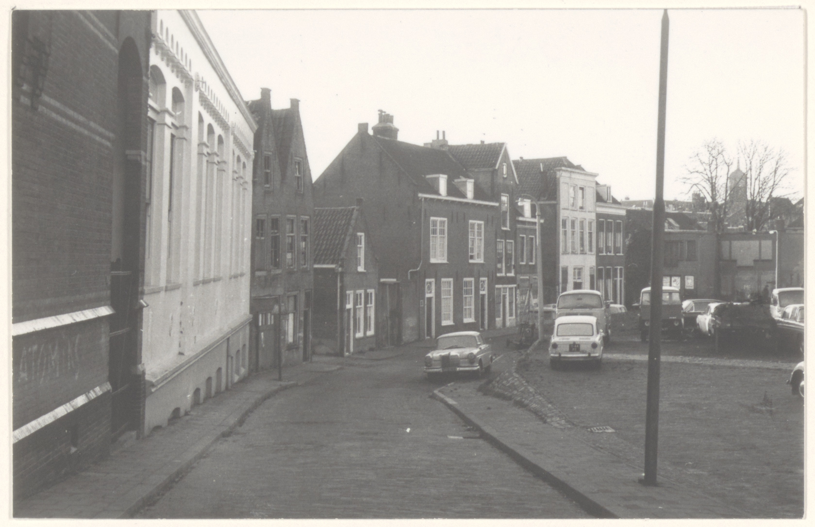 - Zuidelijk deel van het Nieuwkerksplein, gezien vanaf de Vest naar het westen. Links de lagere school en rechts op de achtergrond het torentje van de Bonifatiuskerk in de Wijnstraat.