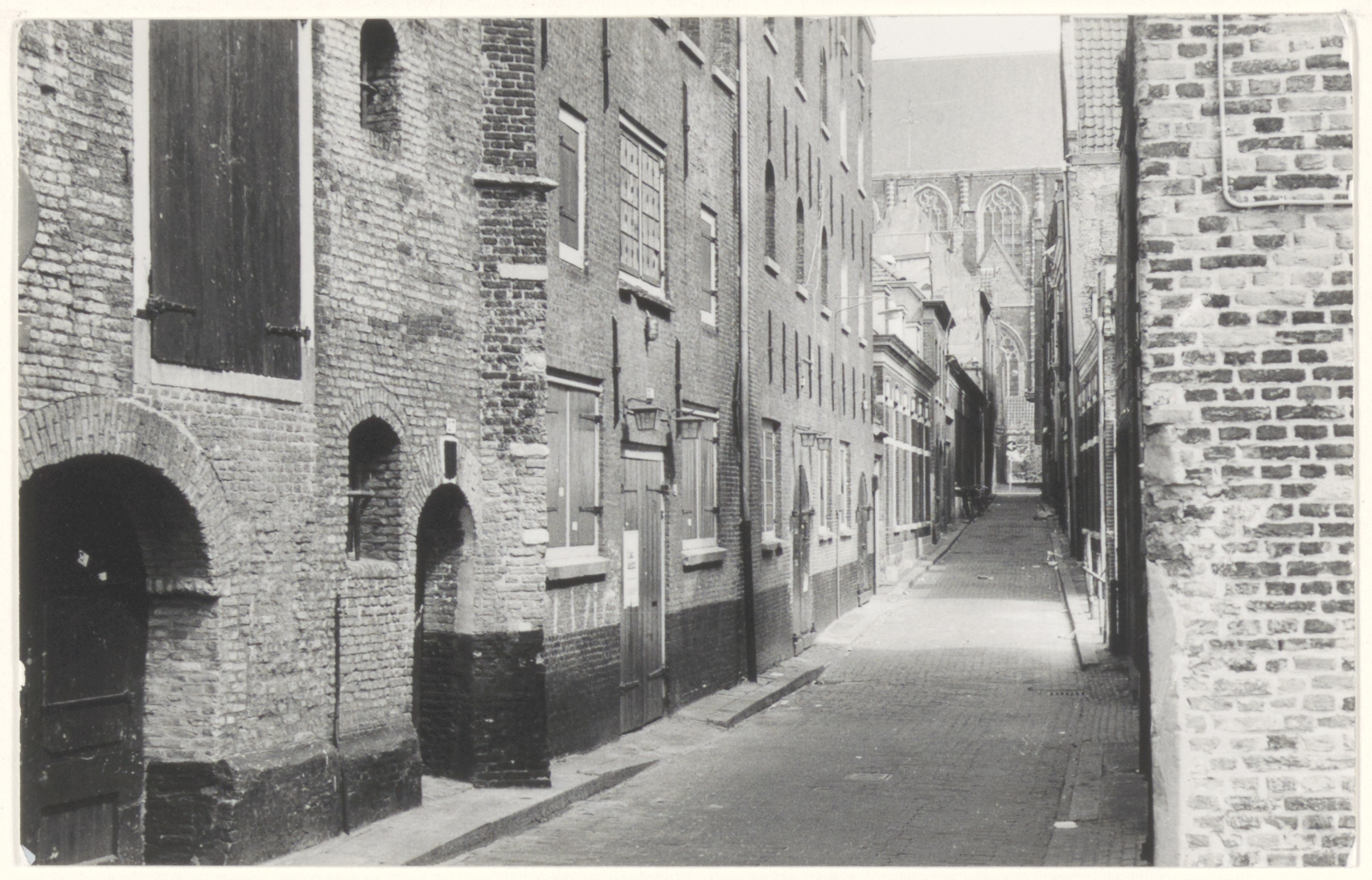 De Dolhuisstraat gezien vanaf de Boogjes in de richting van de Voorstraat en Grote Kerk.