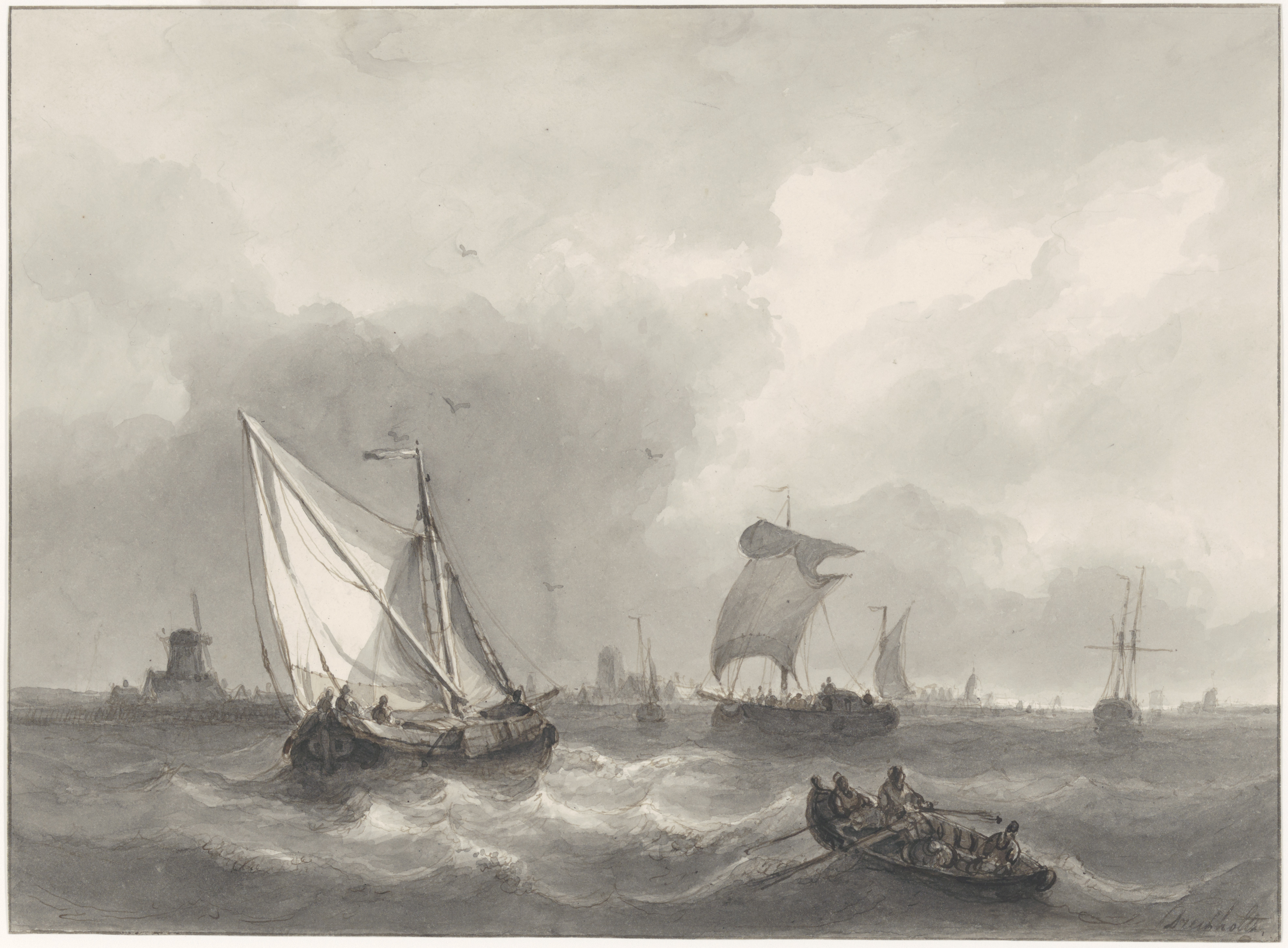 Gezicht op Dordrecht, genomen ter hoogte van Zwijndrecht, met Dordrecht in het verschiet.