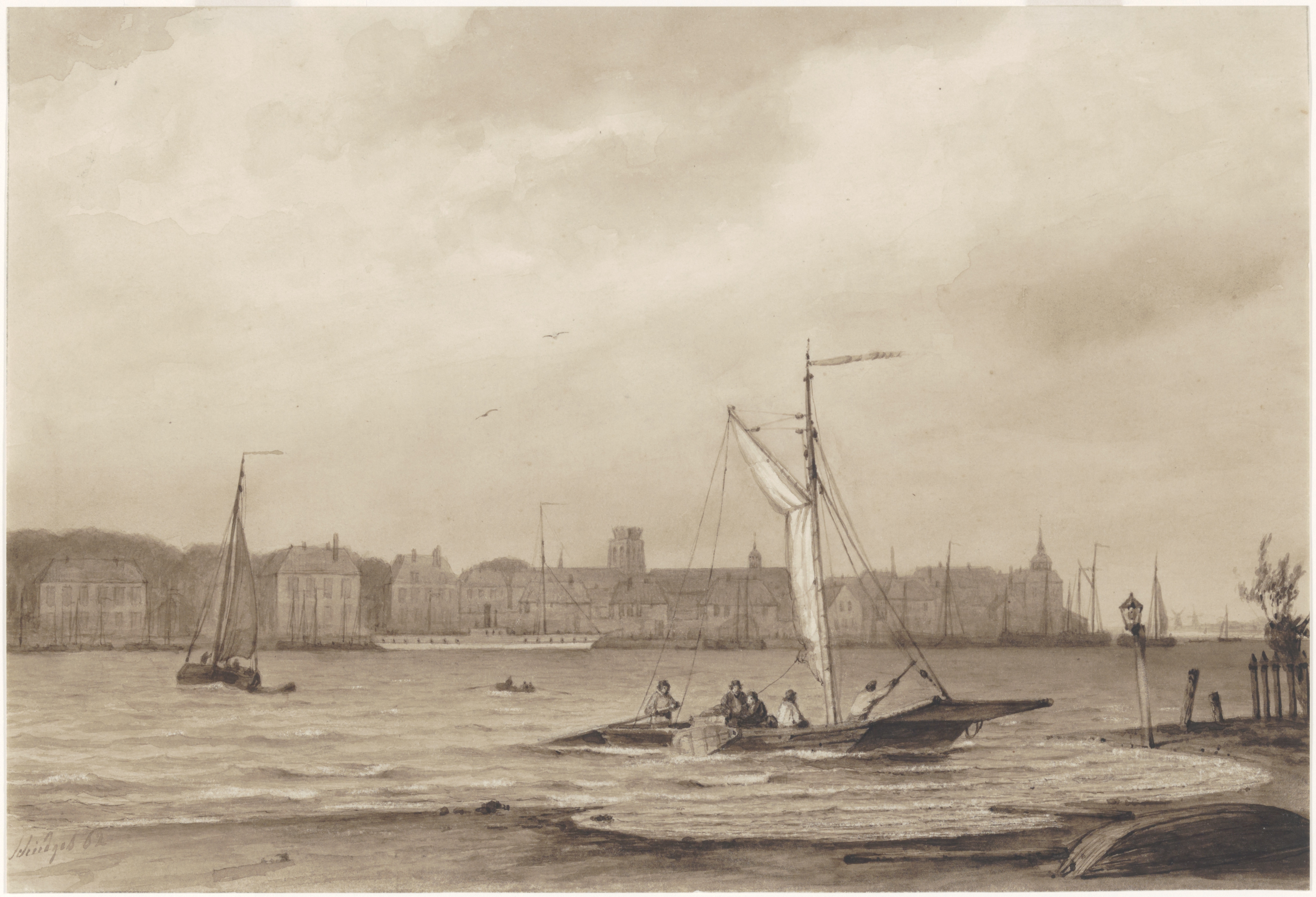 - Veren Het veer op Zwijndrecht met zeilpont gezien van de Zwijndrechtse oever der Oude Maas, 1862.