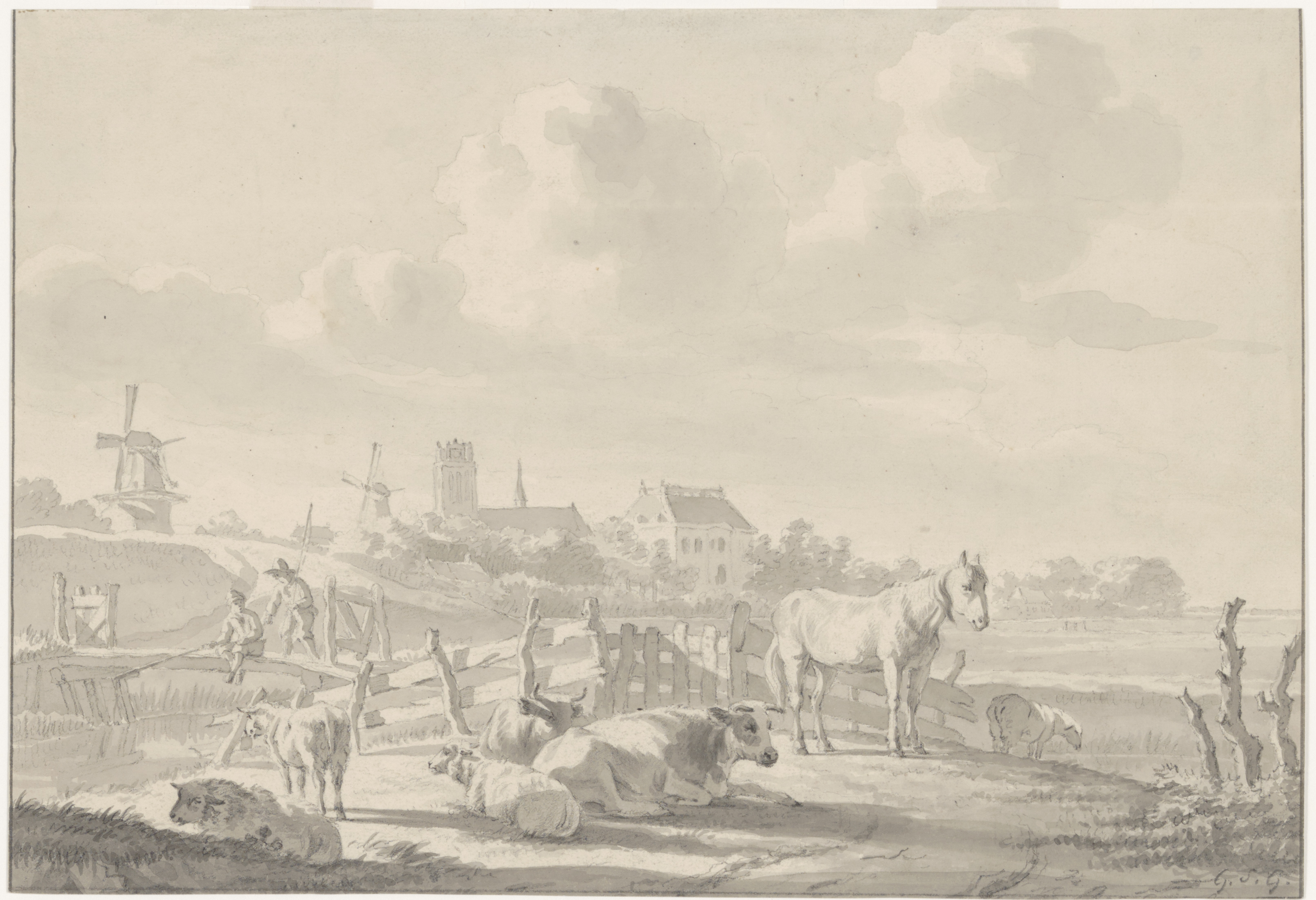 - Weeskinderdijk Gezicht onder aan de oostelijke tak van de Weeskinderdijk, c. 1860.