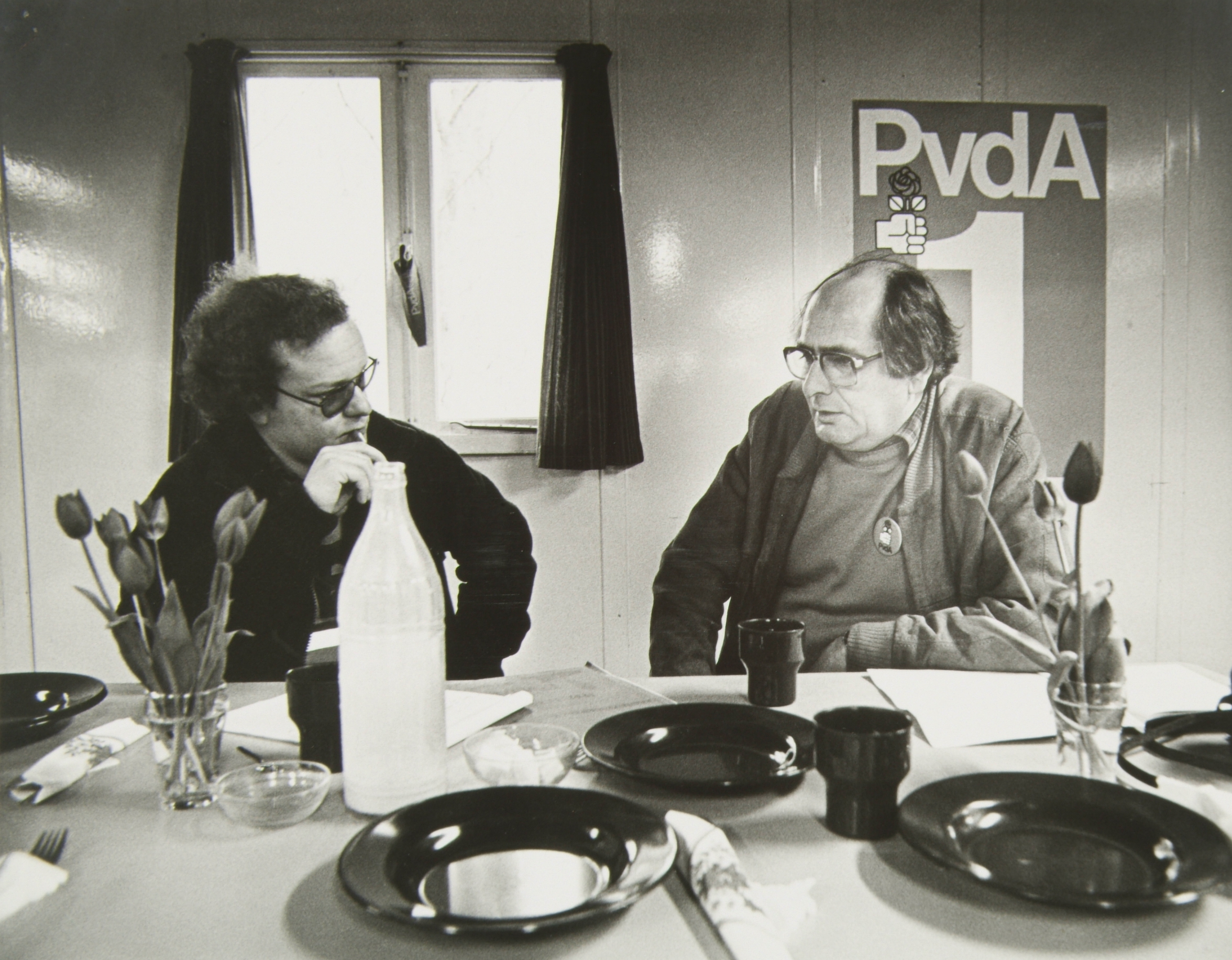 Gemeenteraadsverkiezingen van mei 1982. PvdA-lijsttrekker Piet Janse in gesprek met …