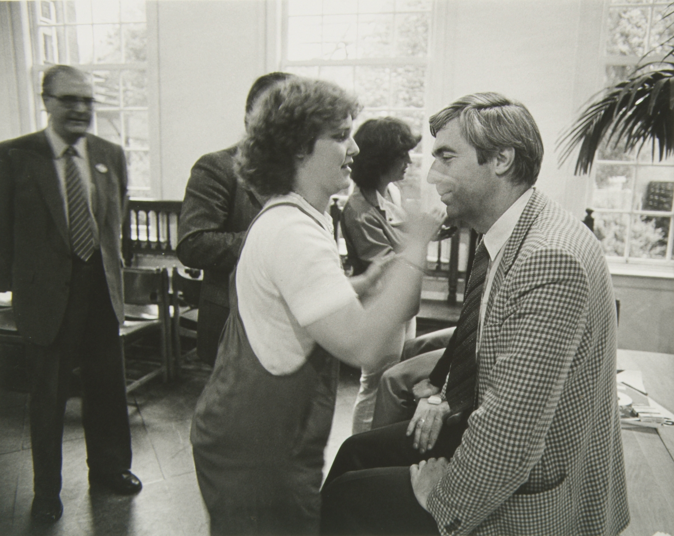 - Gemeenteraadsverkiezingen van mei 1982. Voorbereidingen bij opnamen voor het verkiezingsfilmpje C. de Kovel (CDA) wordt gepoederd; zijn partijgenoot Leen van Valen Pzn. kijkt toe