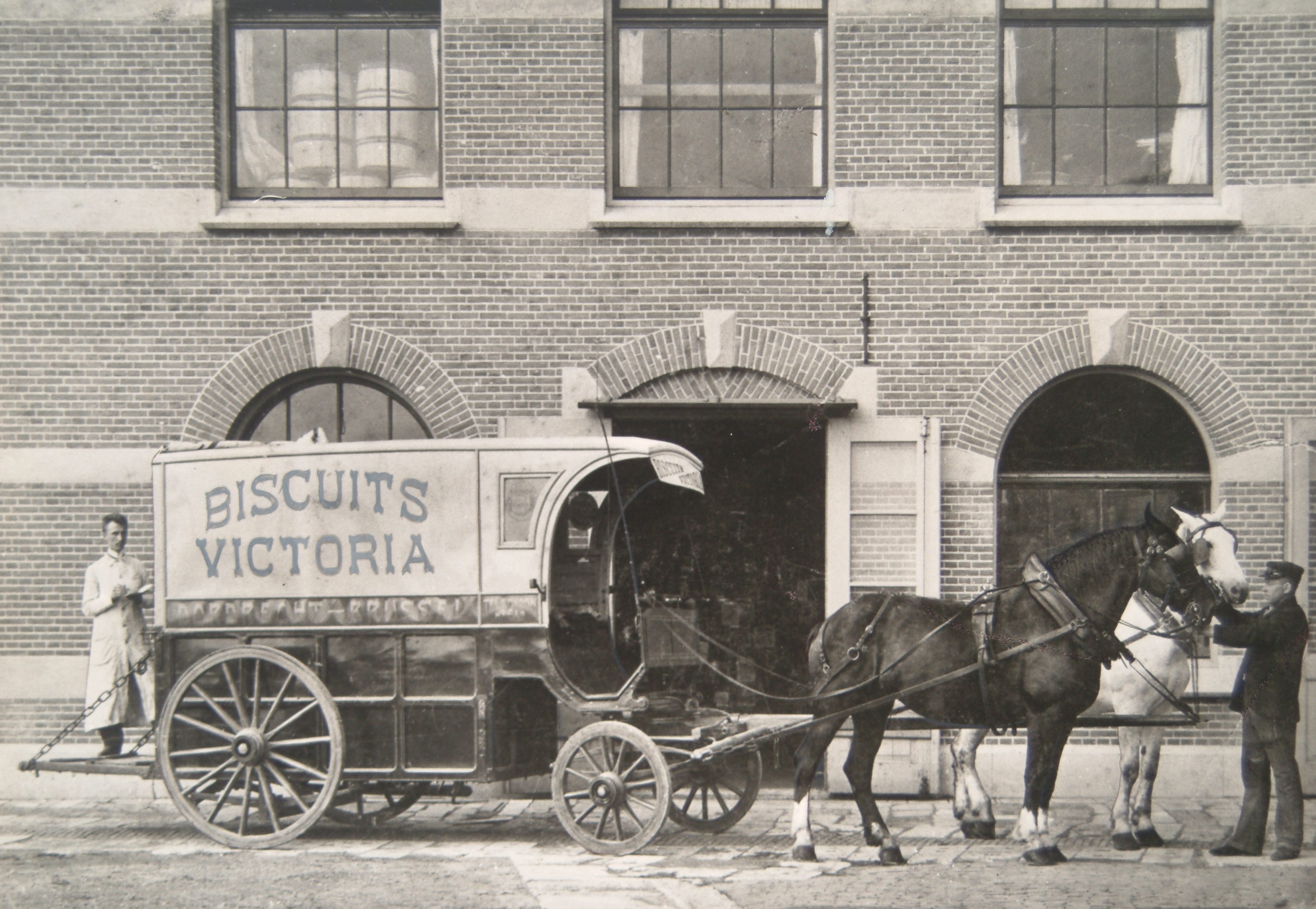 Paard en wagenvan de Chocolade- en biscuitfabriek Victoria voor de fabriek aan de Korte …