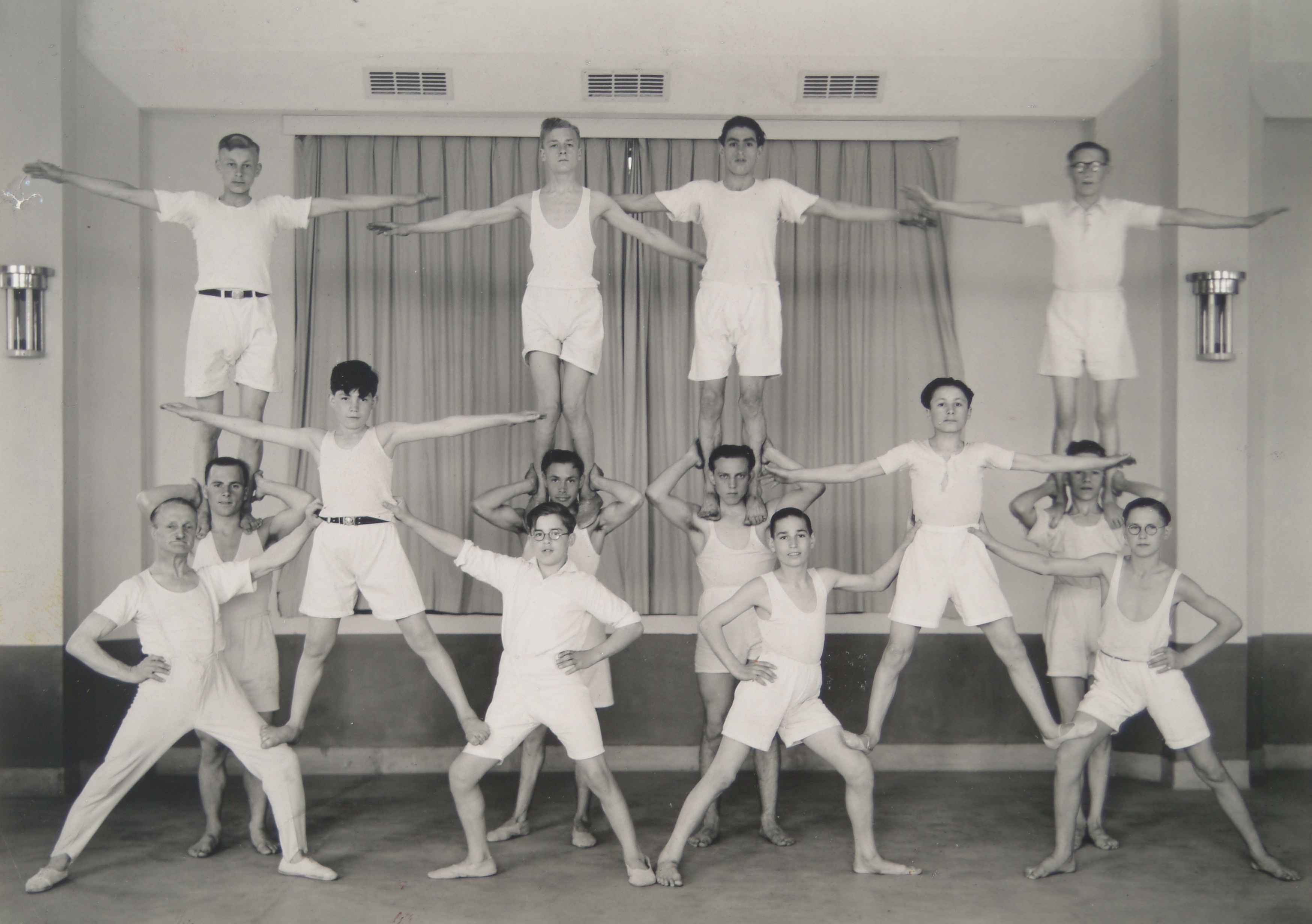 Turnclub van de Chocolade- en biscuitfabriek Victoria aan de Korte Parallelweg in actie