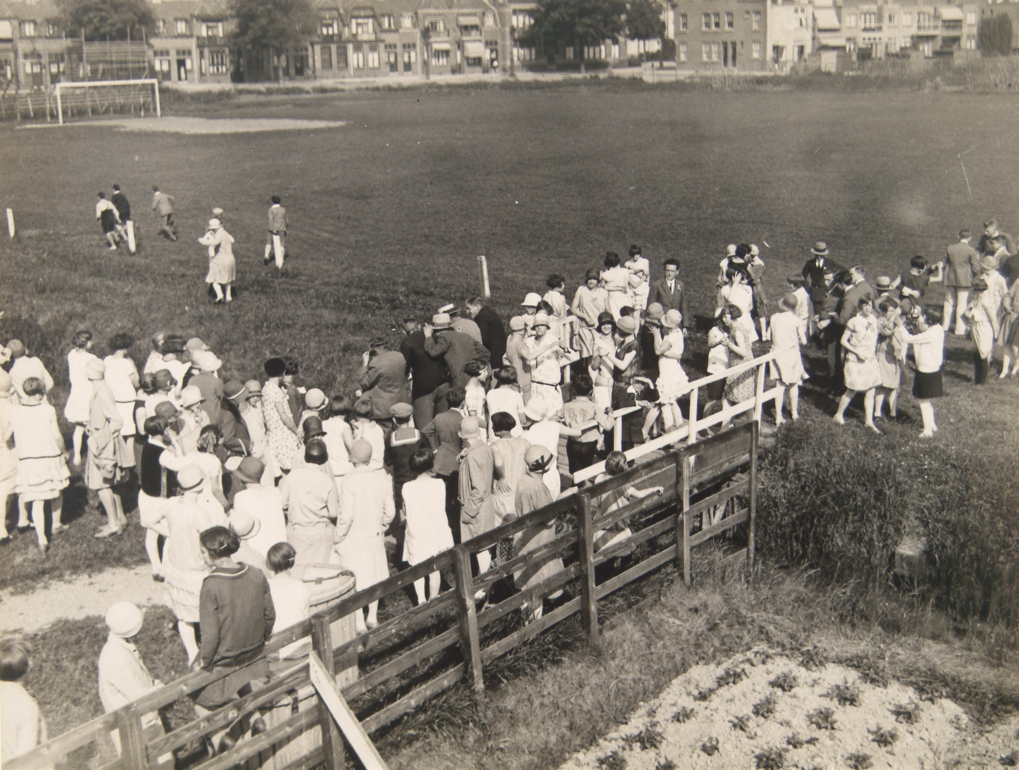 - Spelletjes van kinderen van het Victoriapersoneel op het voetbalveld aan de Markettenweg, hier doen ze een dansje