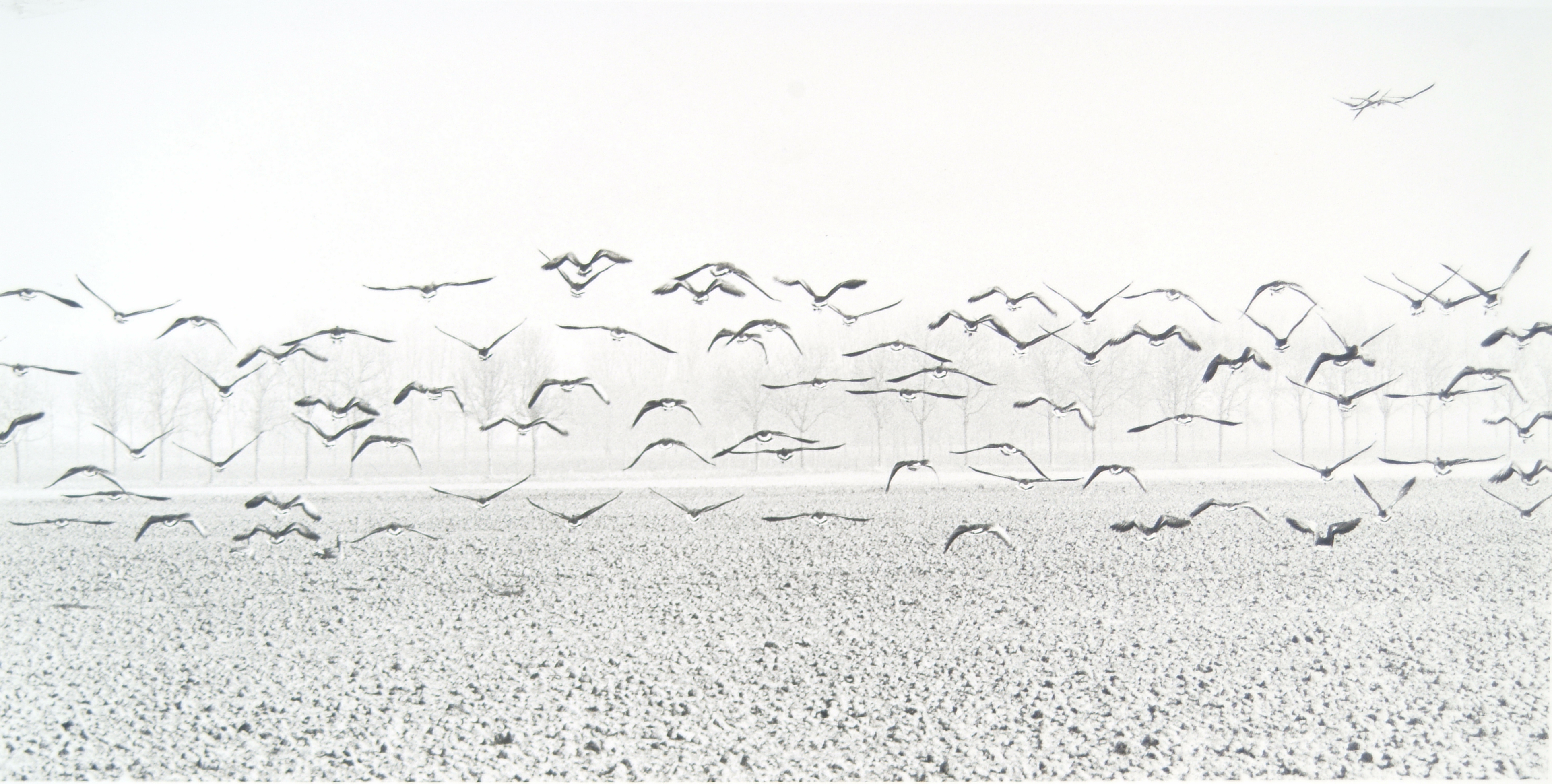 Vlucht ganzen in winterslandschap bij de Noorderelsweg