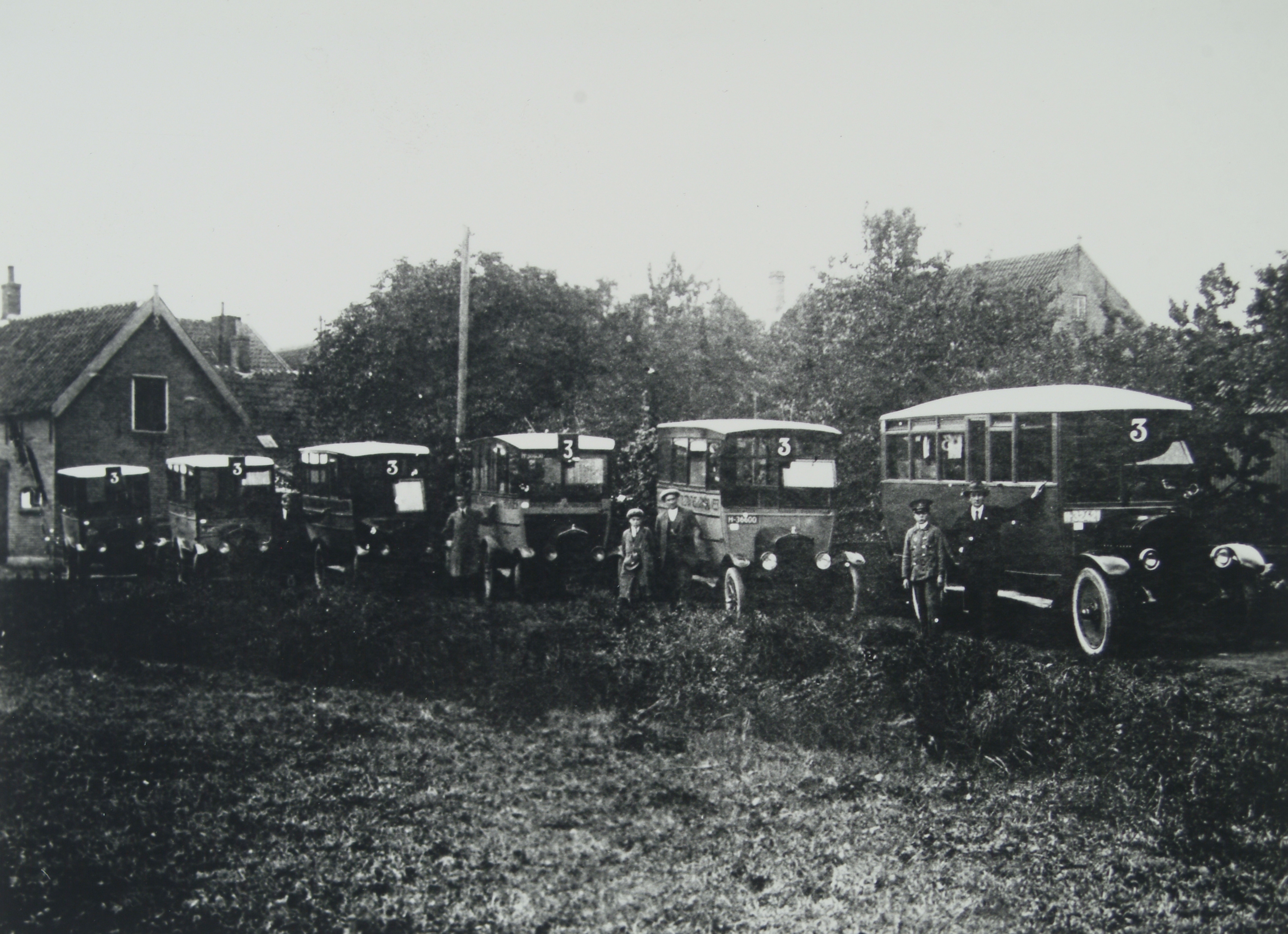 - Bussen met personeel van carrosserie- en wagenmakerij firma D. Meeldijk aan de Grotekerksbuurt
