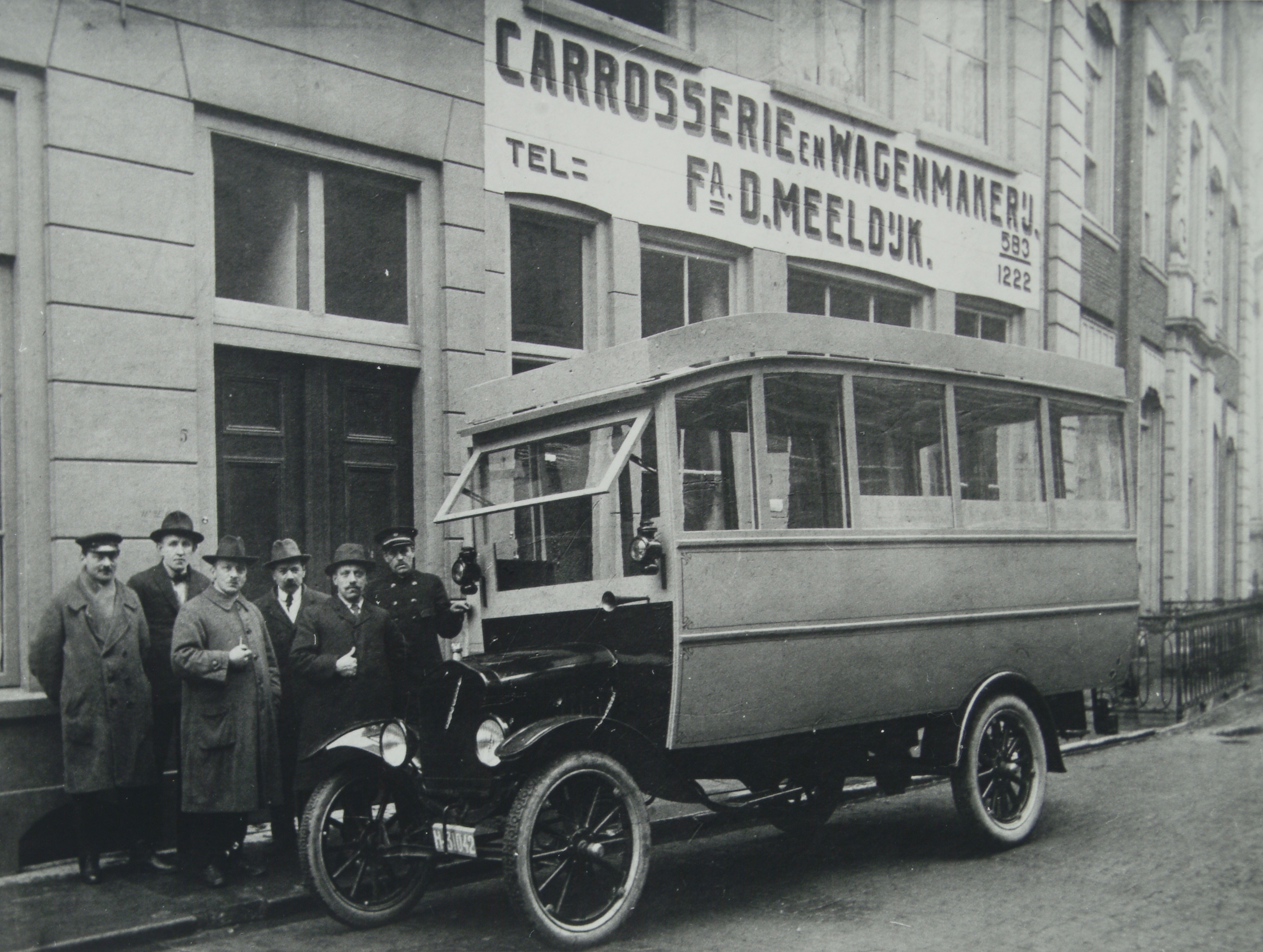Bus met personeel van carrosserie- en wagenmakerij firma D. Meeldijk aan de …