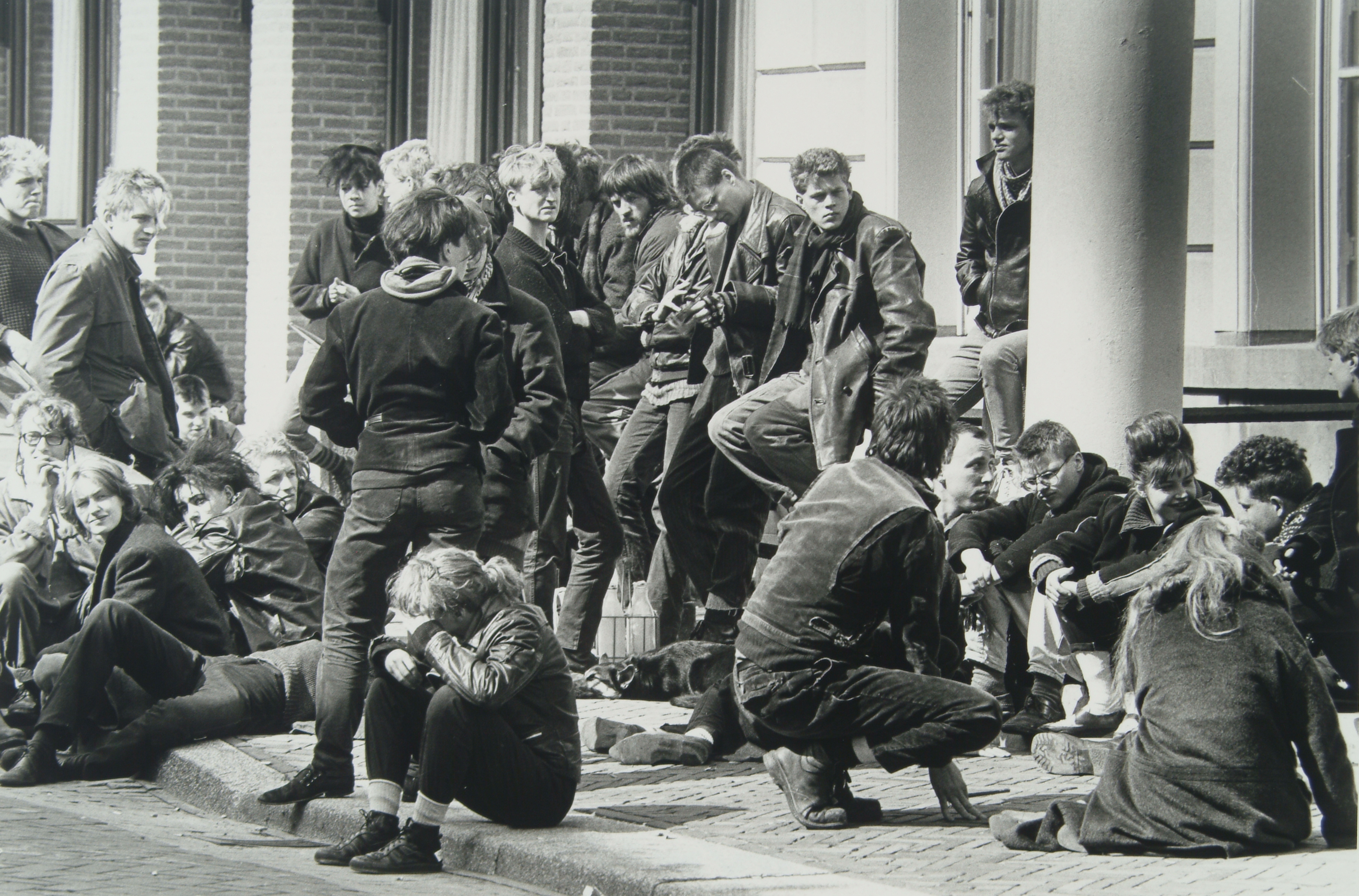 - Bijeenkomst op de trappen van de rechtbank aan het Steegoversloot van anti-fascistische jongeren.