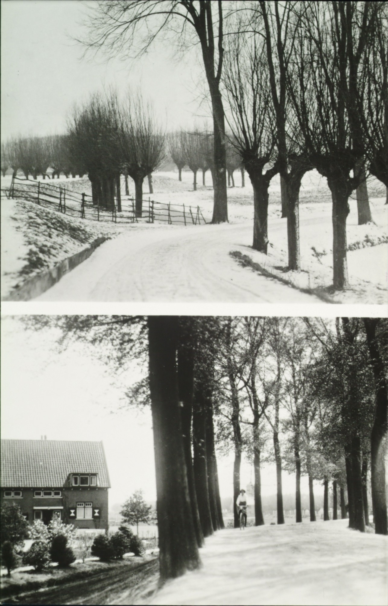 - Boven: splisting Krommedijk (links) en Korte Scheidingsweg. Onder: Het landhuis Zonnehoeve in de hoek tussen de Krommedijk en de Crayensteynstraat. Op de achtergrond de korenmolen Willem II aan de Krommedijk.