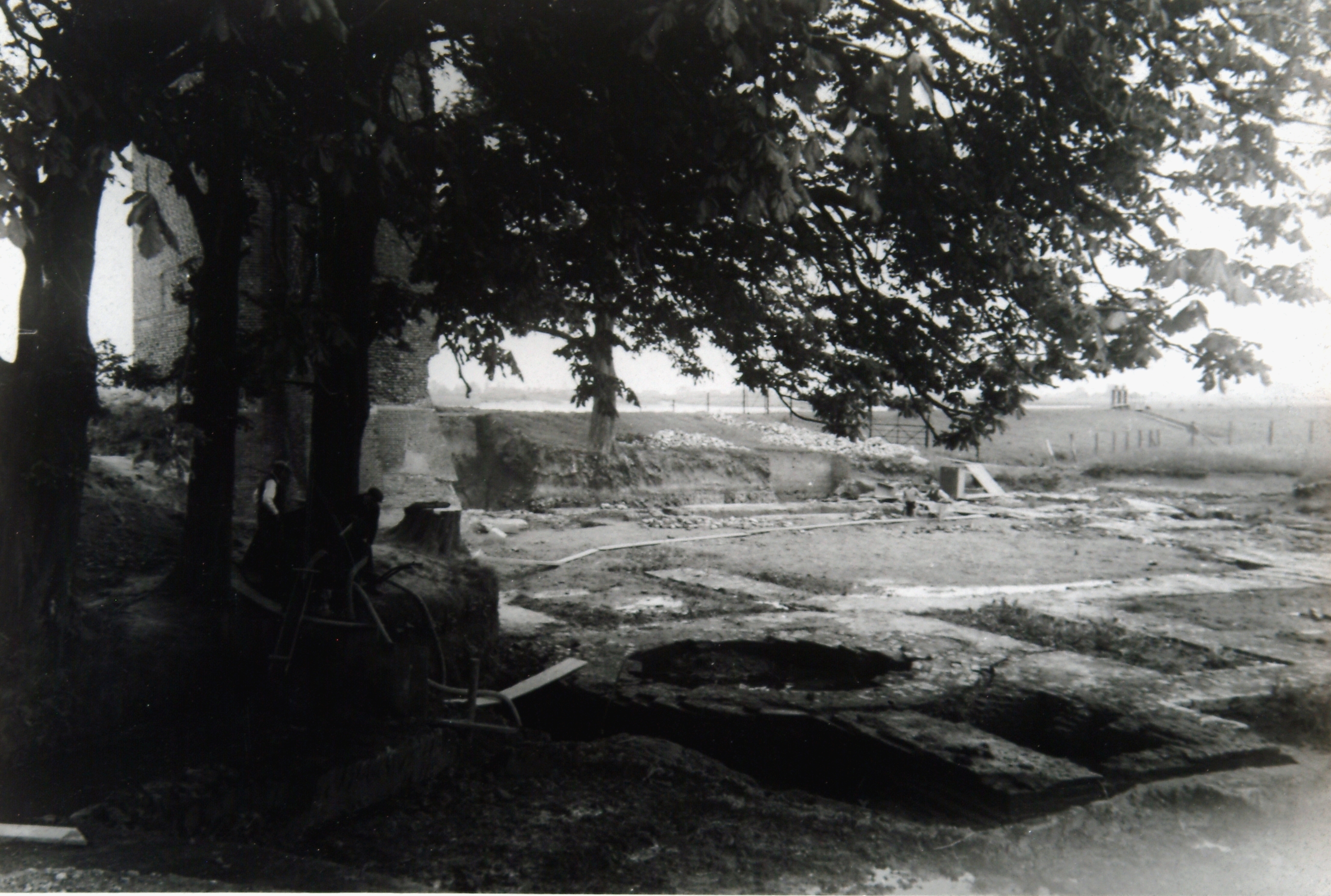 Bij mijn weten werden ruïne en fundamenten tussen 1940 en 1943 archeologisch onderzocht, deze foto moet dus enkele jaren later genomen zijn dan 1938.