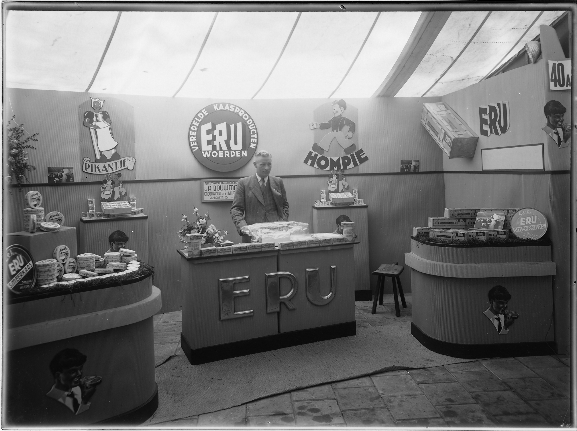 Stand van kaashandel A. Bouwman uit de Hendrikstraat met kaasproducten van ERU op de …