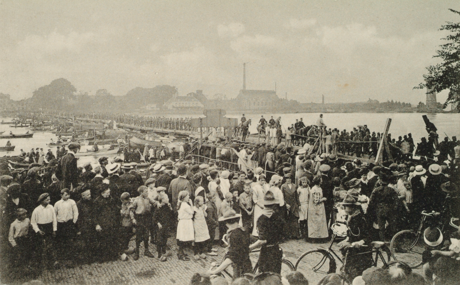 Korps Pontonniers, Dordrecht. Schipbrug 24 juni 1915. Overtocht 1e Bat. 15e Reg. …