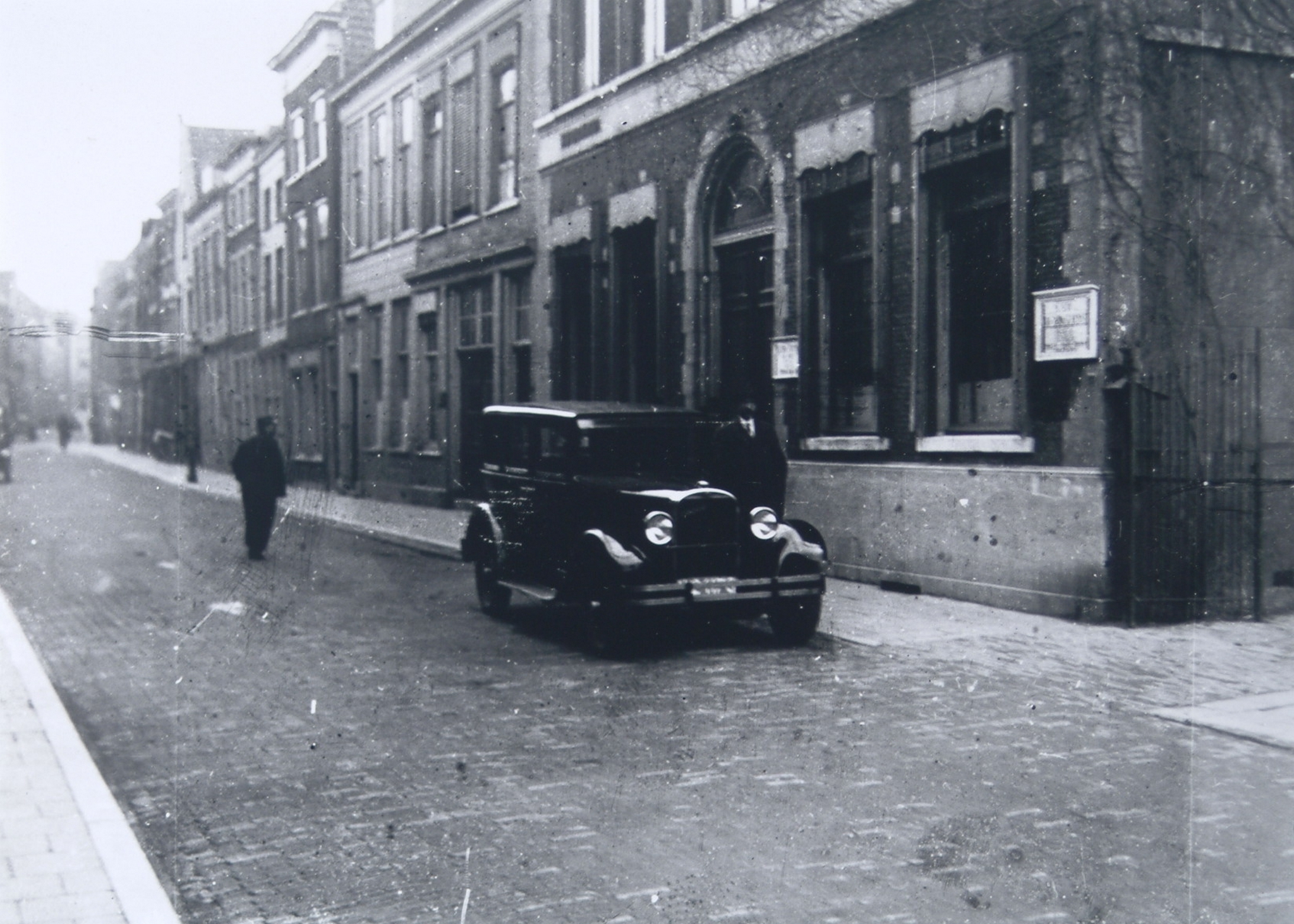 - Personenauto van de Keuringsdienst van Waren voor het gebouw aan de Nieuwstraat 60