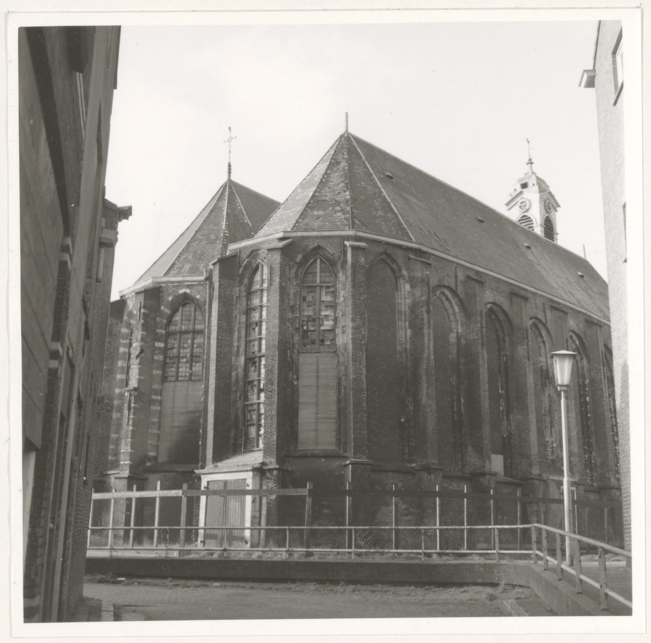 De Nieuwkerk op het Nieuwkerksplein, voor de consolidatie in 1975.