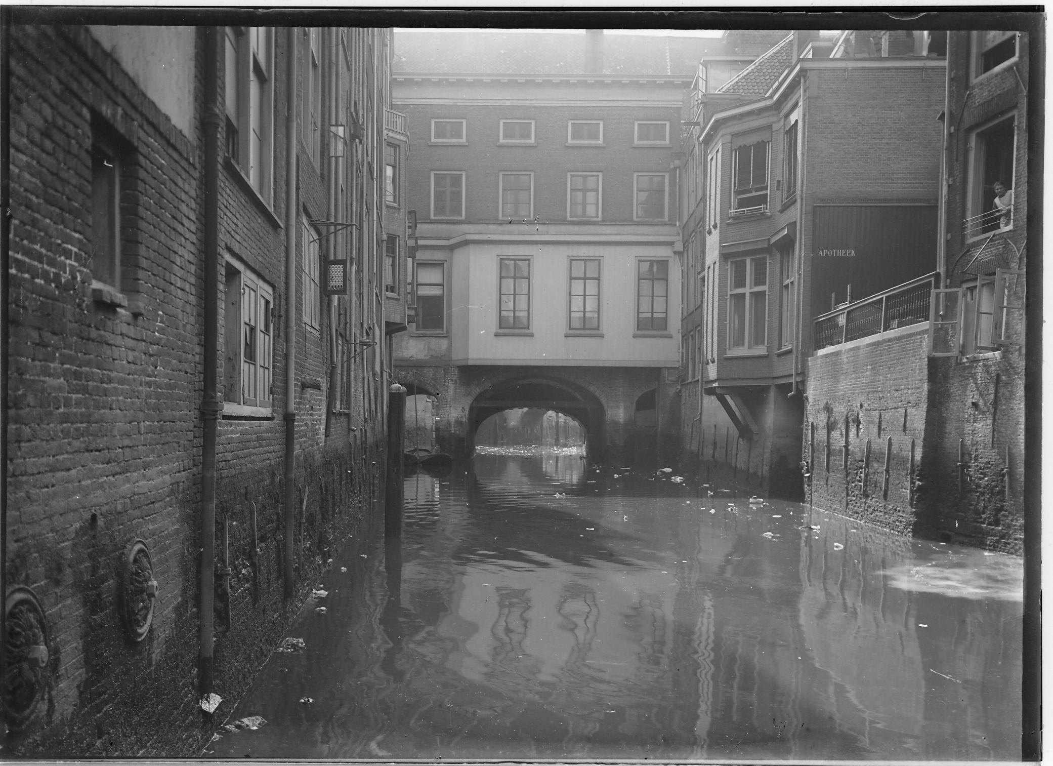 - Voorstraatshaven bij het stadhuis met doorkijk, panden links aan de Voorstraat en rechts de Groenmarkt