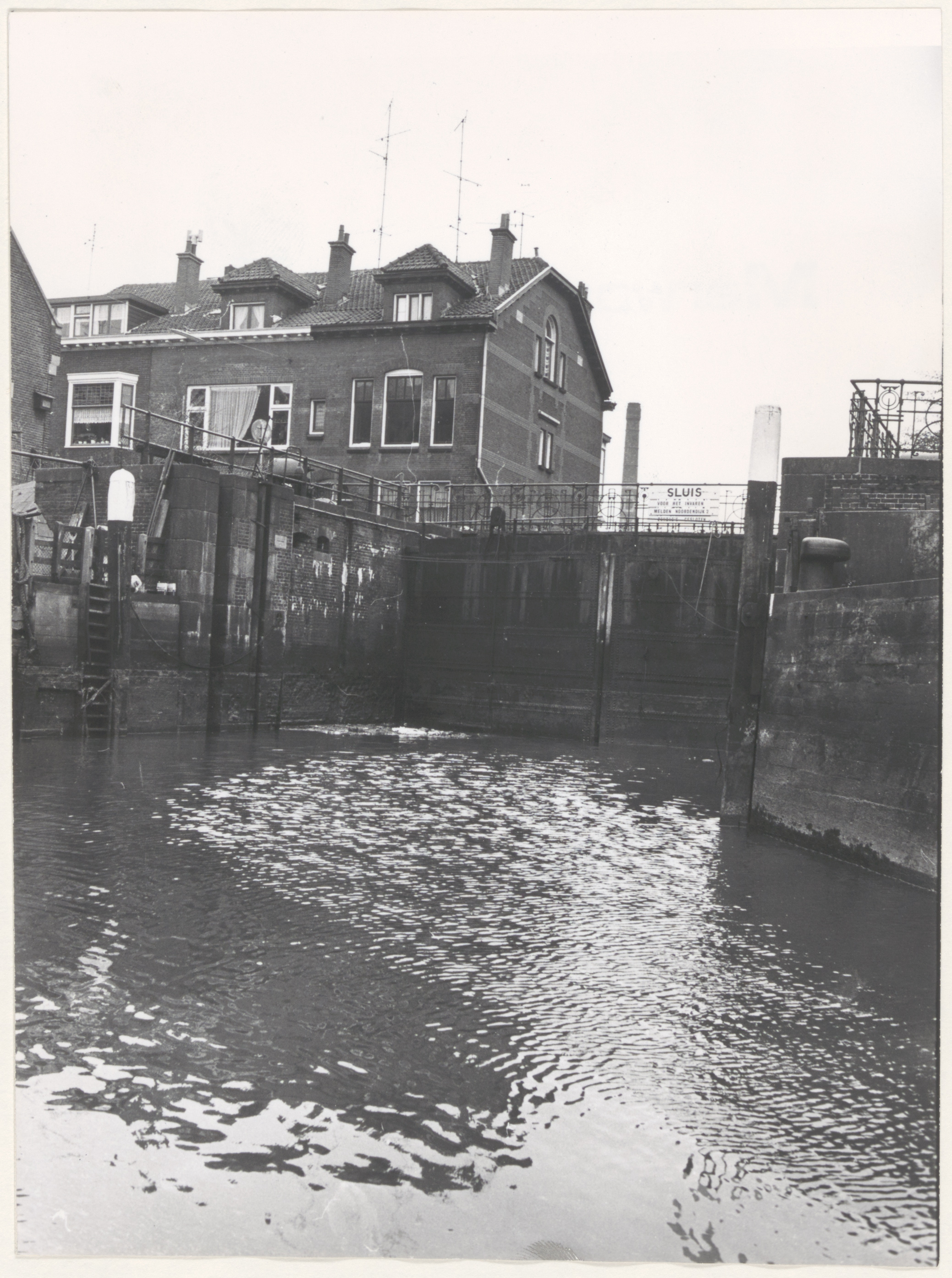 De sluisdeuren van de Noordersluisbrug, gezien vanaf het water van de Riedijkshaven; …