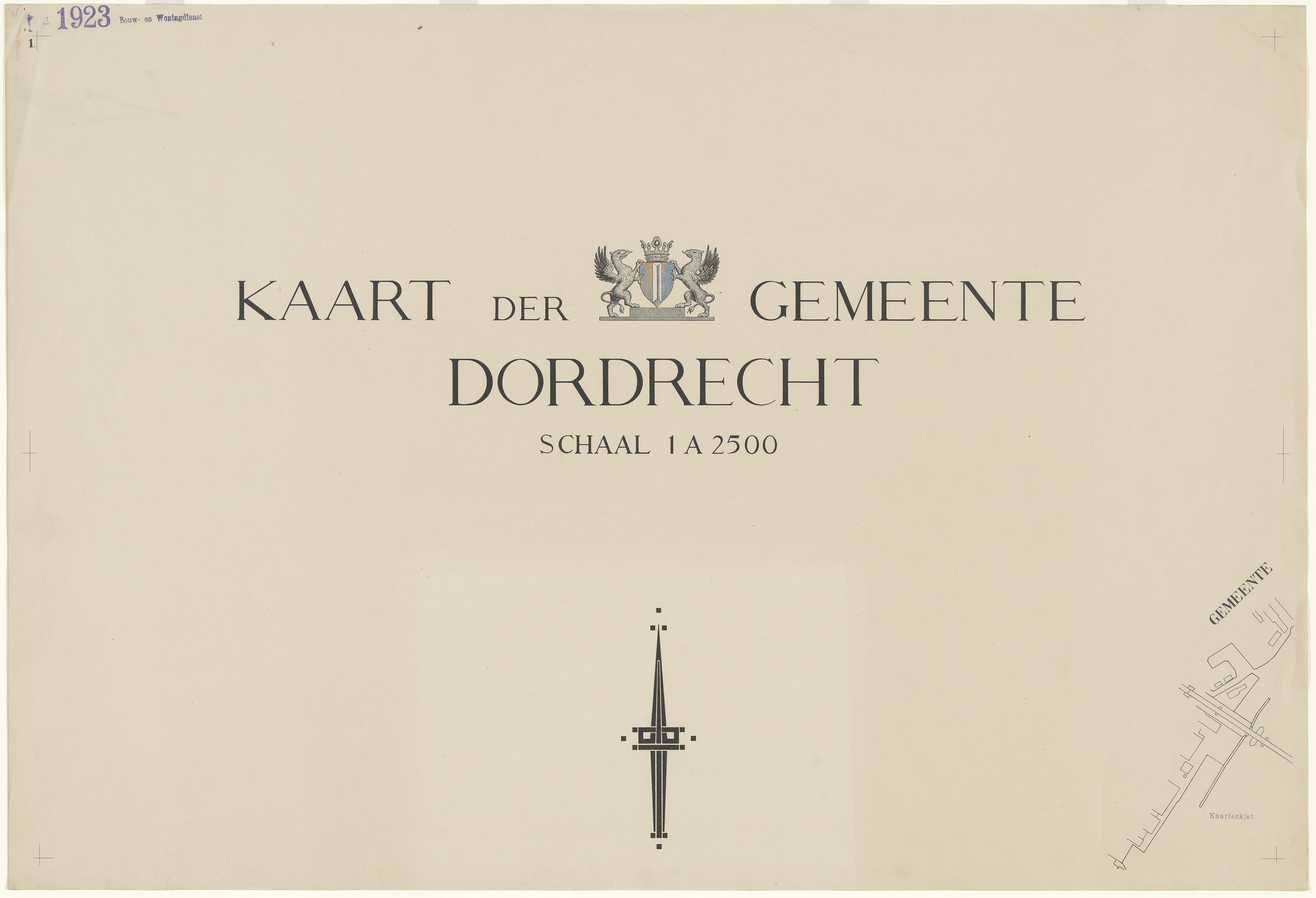 Kaart van Dordrecht in 9 bladen, omvattende het gebied tussen de Krabbe, Oude Maas, Beneden Merwede, het Vissertje, de Zuidendijk en de Reeweg Zuid.