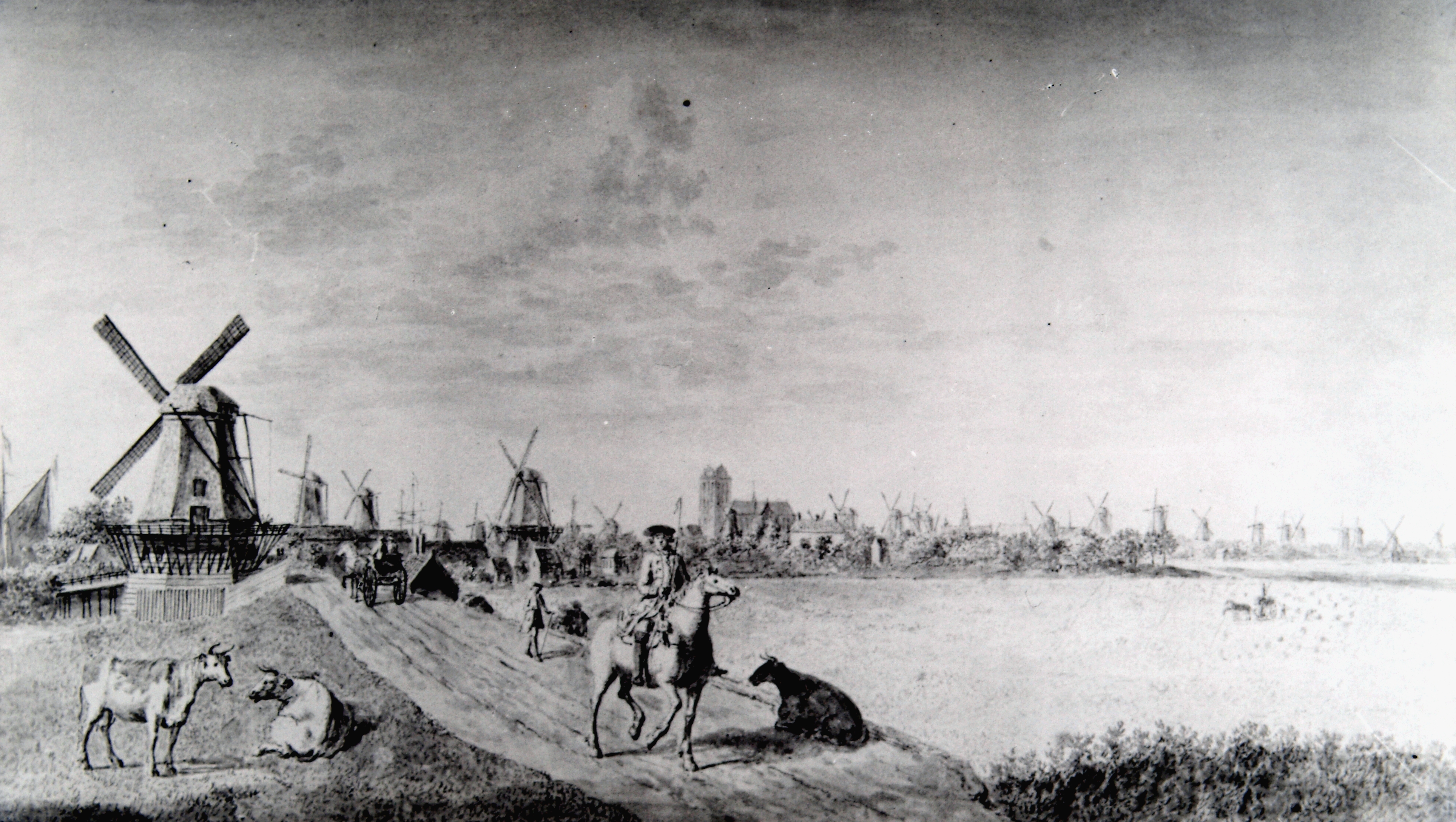 - Tekening in Oost-Indische inkt door A. van Wanum (20,8x35,8 cm) van de 's-Gravendeelsedijk in noordoostelijke richting naar de Noordendijk.