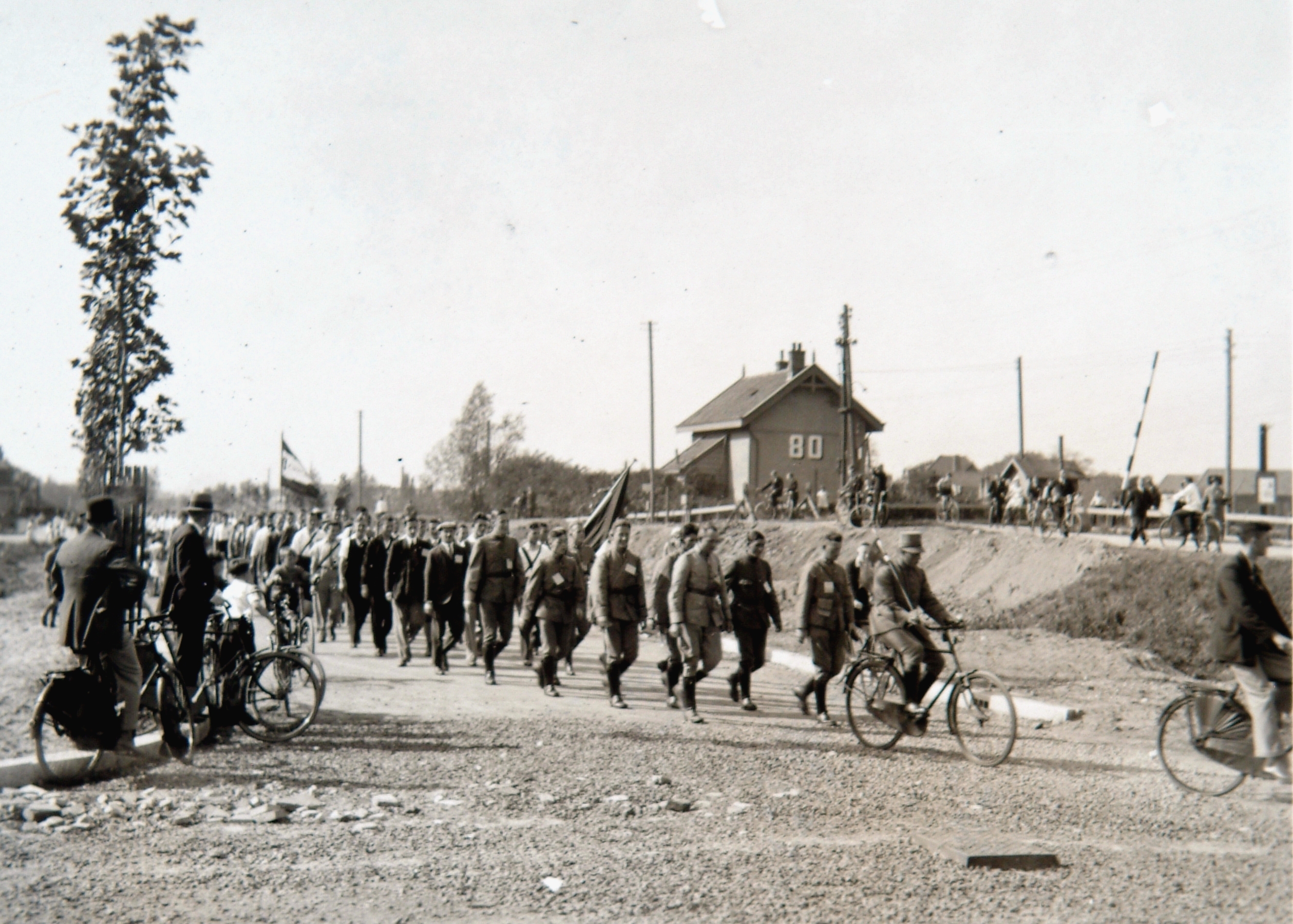 - De overweg aan Reeweg Oost ter hoogte van het Halmaheiraplein. De bijzonder vrijwillige landstorm loopt richting Dubbeldam.