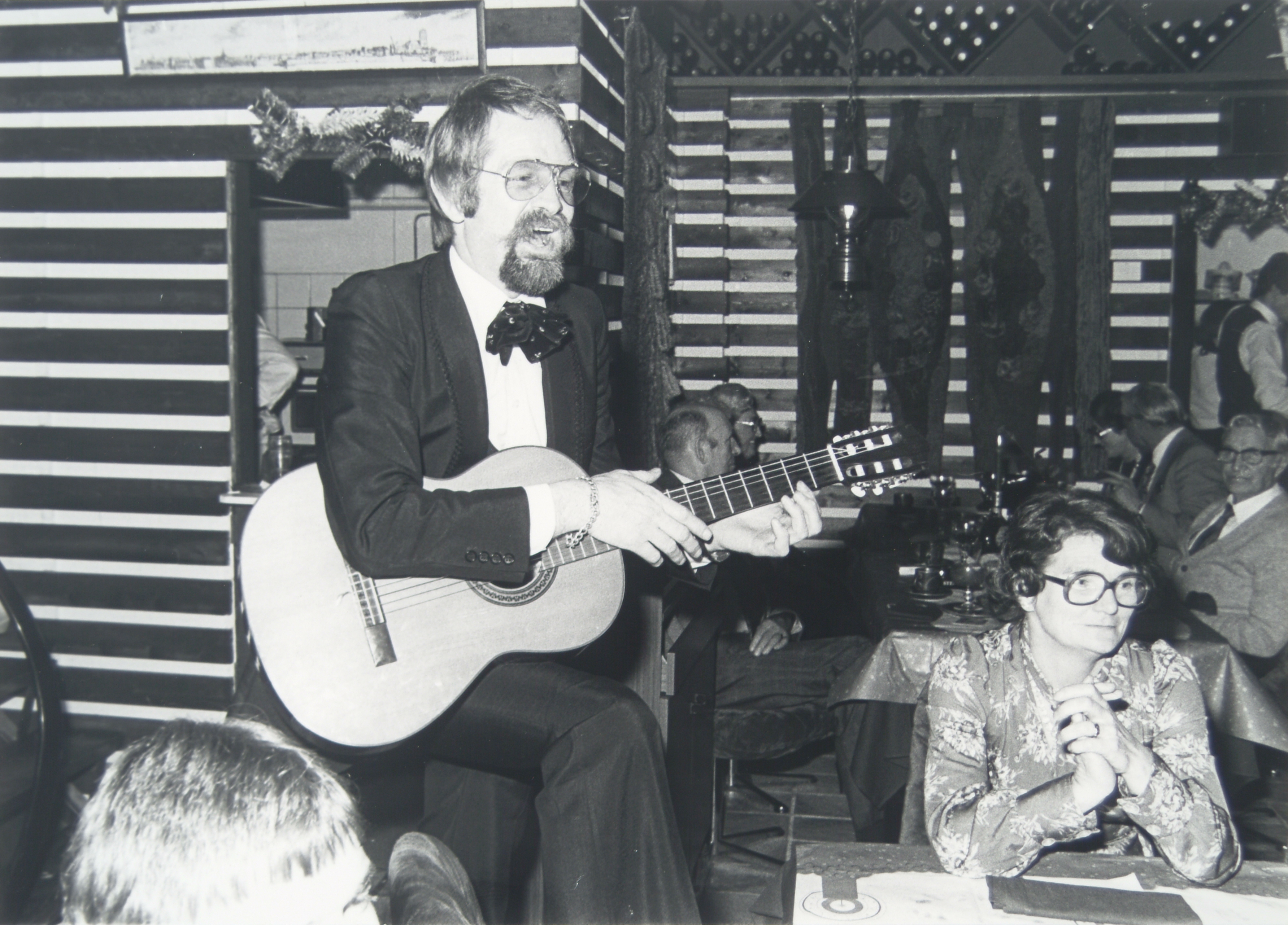Optreden van zanger André Magermans in restaurant Oranjehof aan de Toulonselaan. Hij …