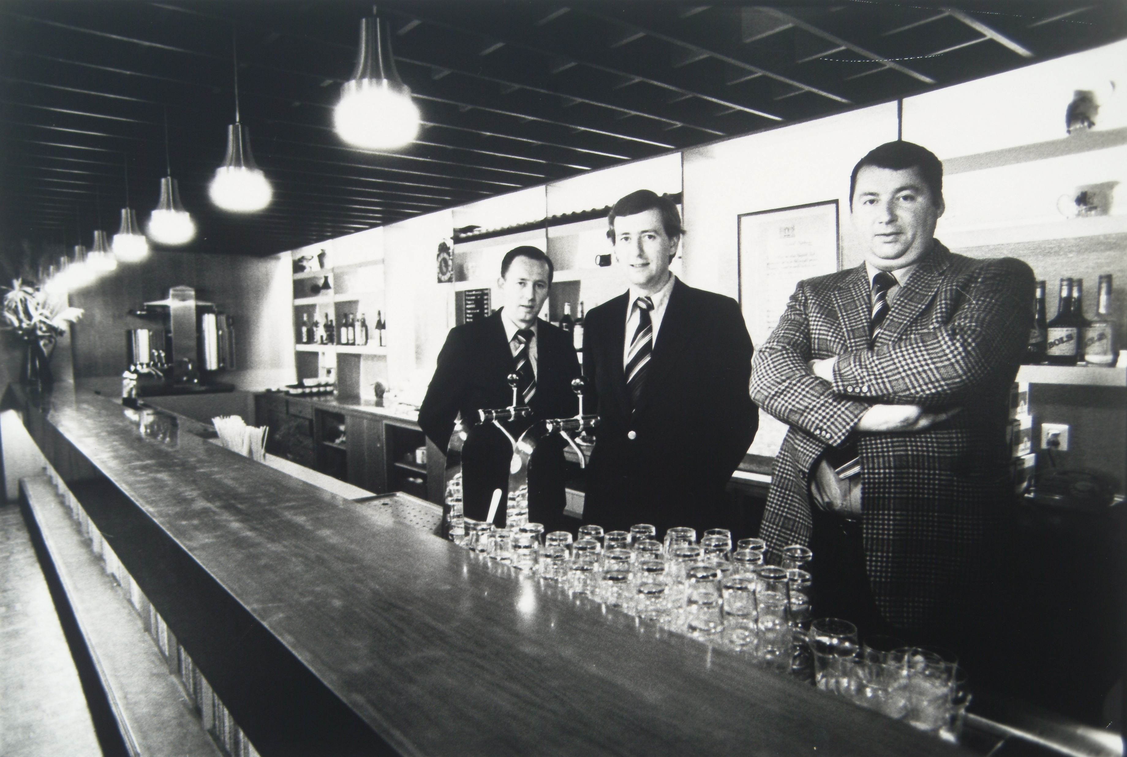 Links de gebroeders Loeve achter de bar in hun café aan de Singel