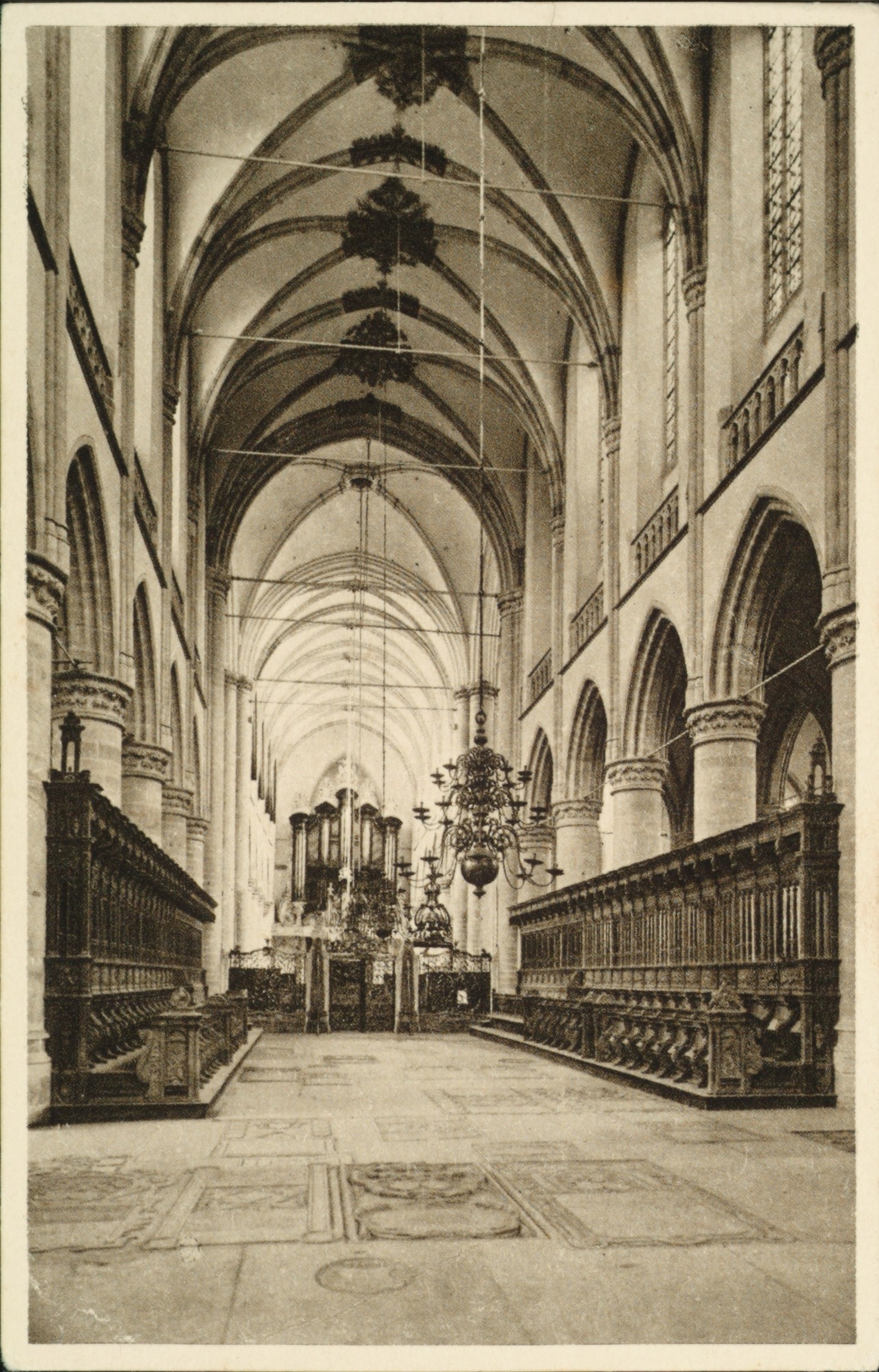 - Lange Geldersekade. Het interieur van de Grote Kerk met het orgel en het Hoge Koor en de koorbanken.