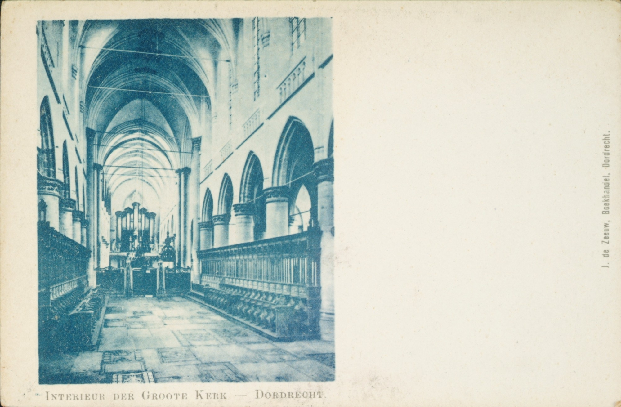 - Lange Geldersekade. Het interieur van de Grote Kerk met het orgel, het Hoge Koor en de koorbanken.