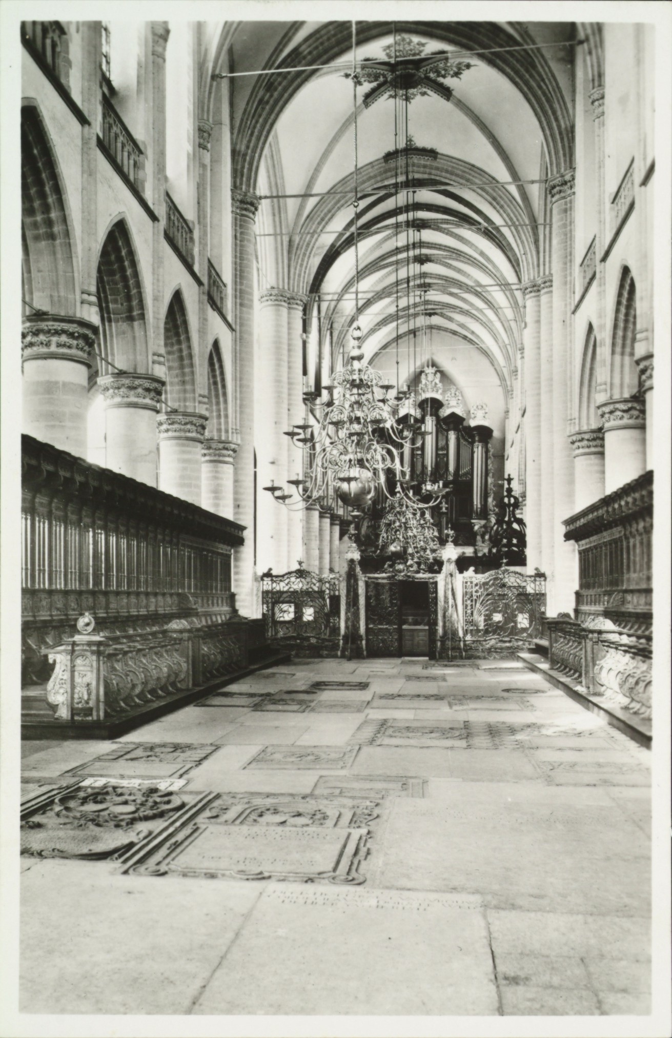 - Lange Geldersekade. Het interieur van de Grote Kerk met het orgel, het Hoge Koor en de koorbanken.
