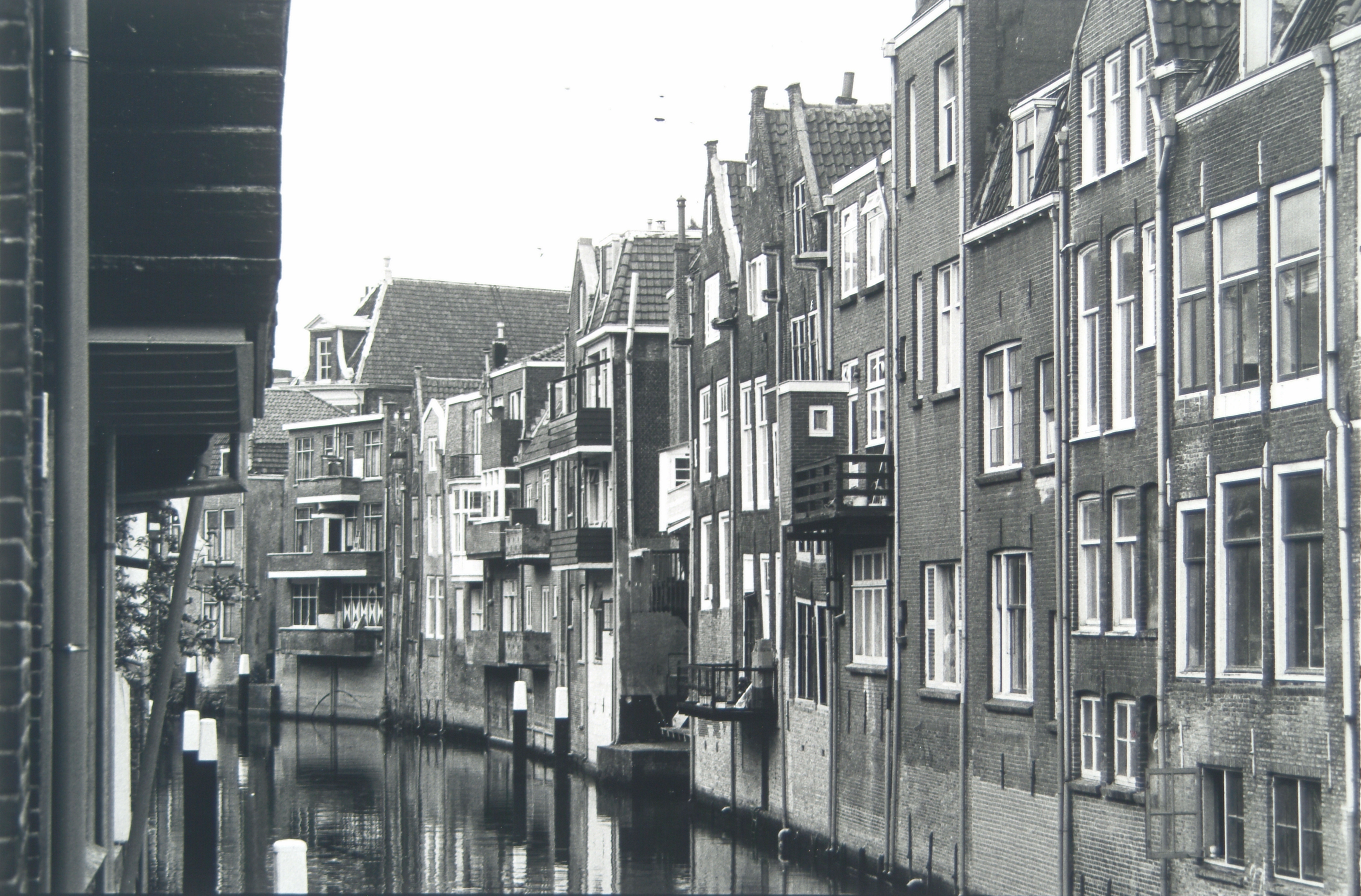 - Voorstraatshaven met watergevels van huizen aan de Voorstraat vanaf de Mansteiger