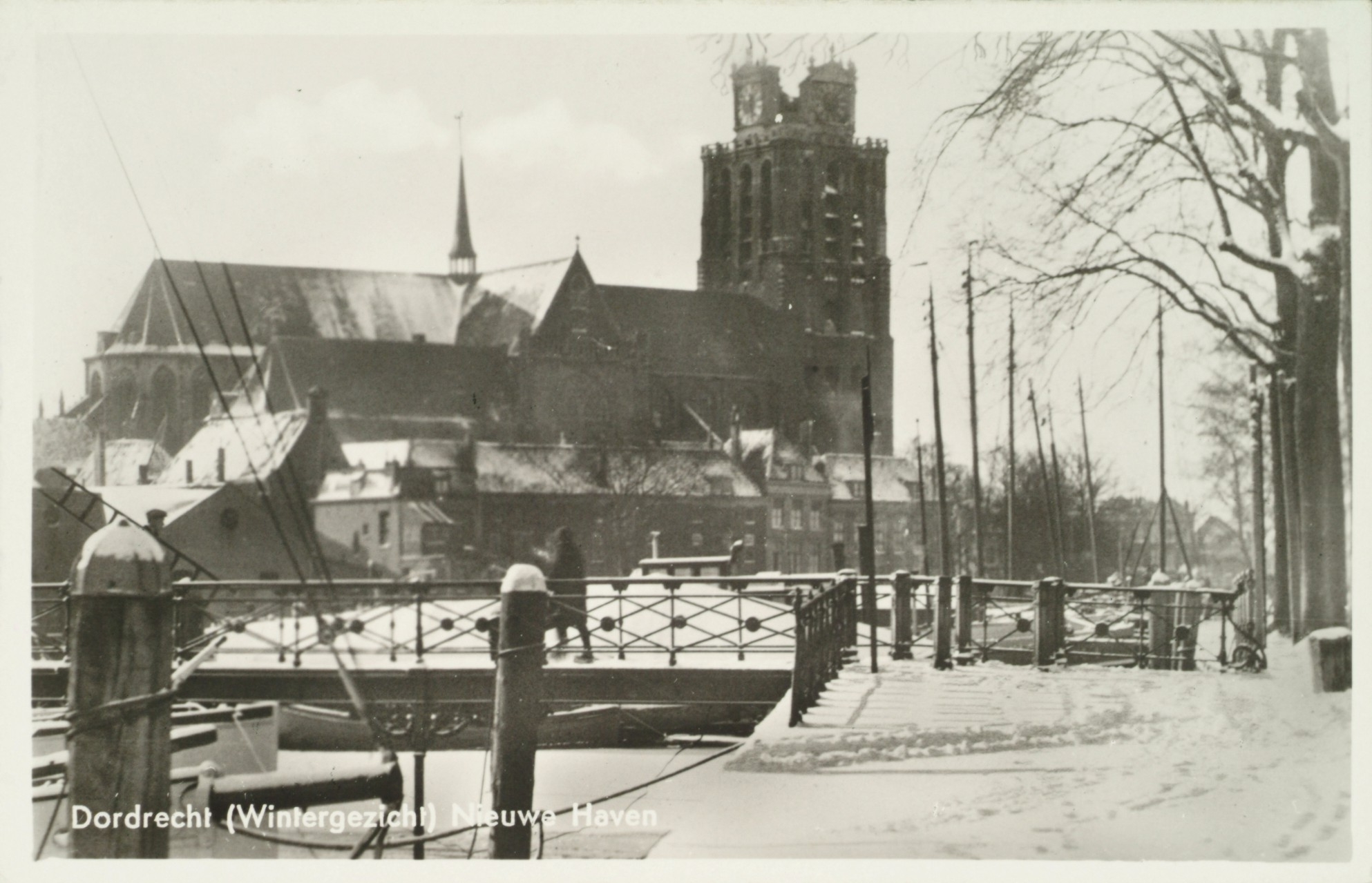 - Op de voorgrond de Lange Ijzeren Brug. Op de achtergrond de Grote Kerk.