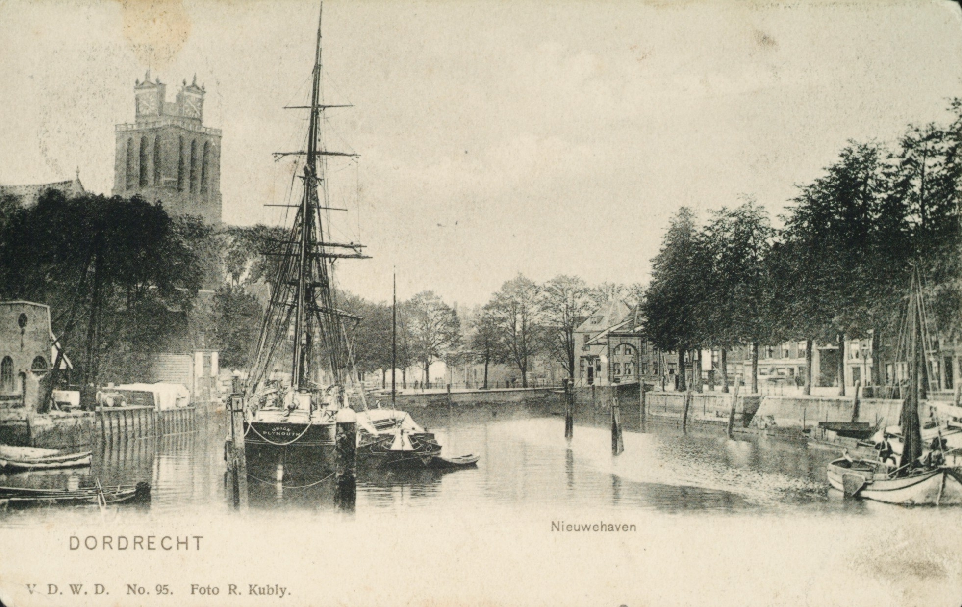 Op de achtergrond zijn zichtbaar: Engelenburgerbrug Blauwpoort Grote Kerk Het schip droeg de naam Union Plymouth