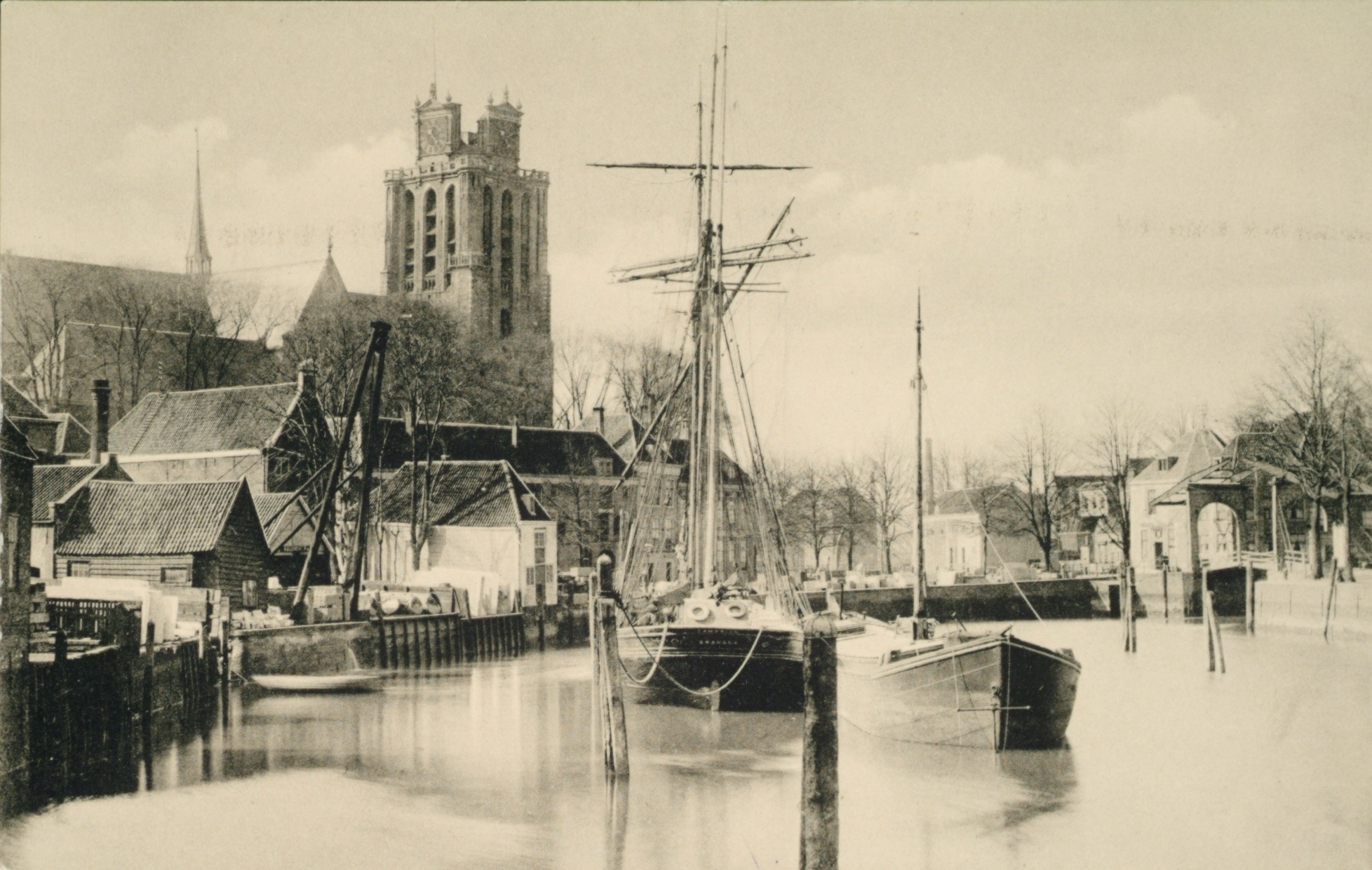Op de achtergrond de Grote Kerk en rechts de Leuvebrug.