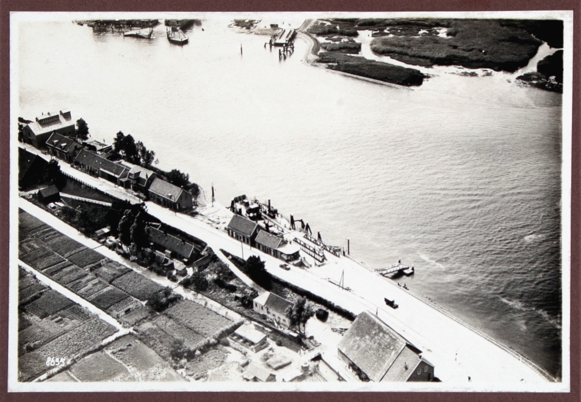 - Luchtfoto van 's-Gravendeel. Dordtsche Kil met het veerpontje aan de Wieldrechtse Zeedijk