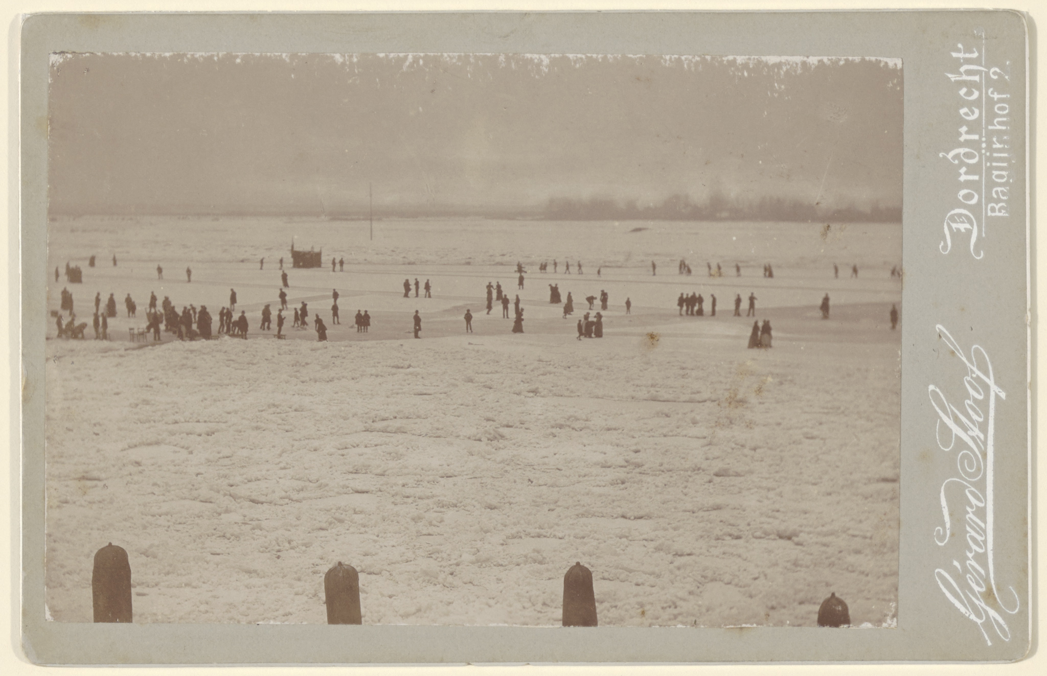 - Gezicht op het ijs, op de rivieren langs de stad Dordrecht.