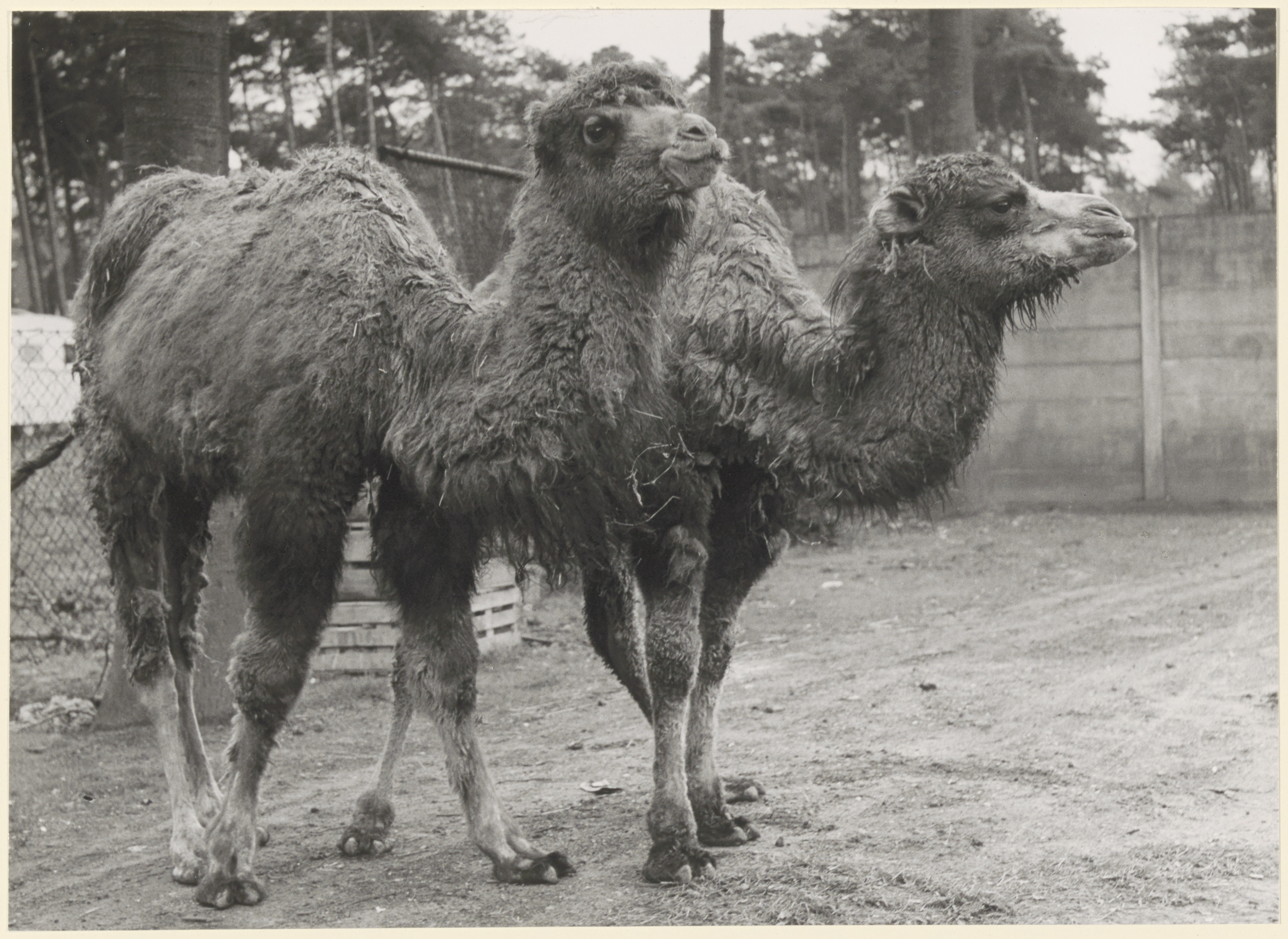Twee kamelen voor het Weizigtpark, aangeboden ter gelegenheid van het jubileum van houthandel De Oranjeboom (Van der Kloet).