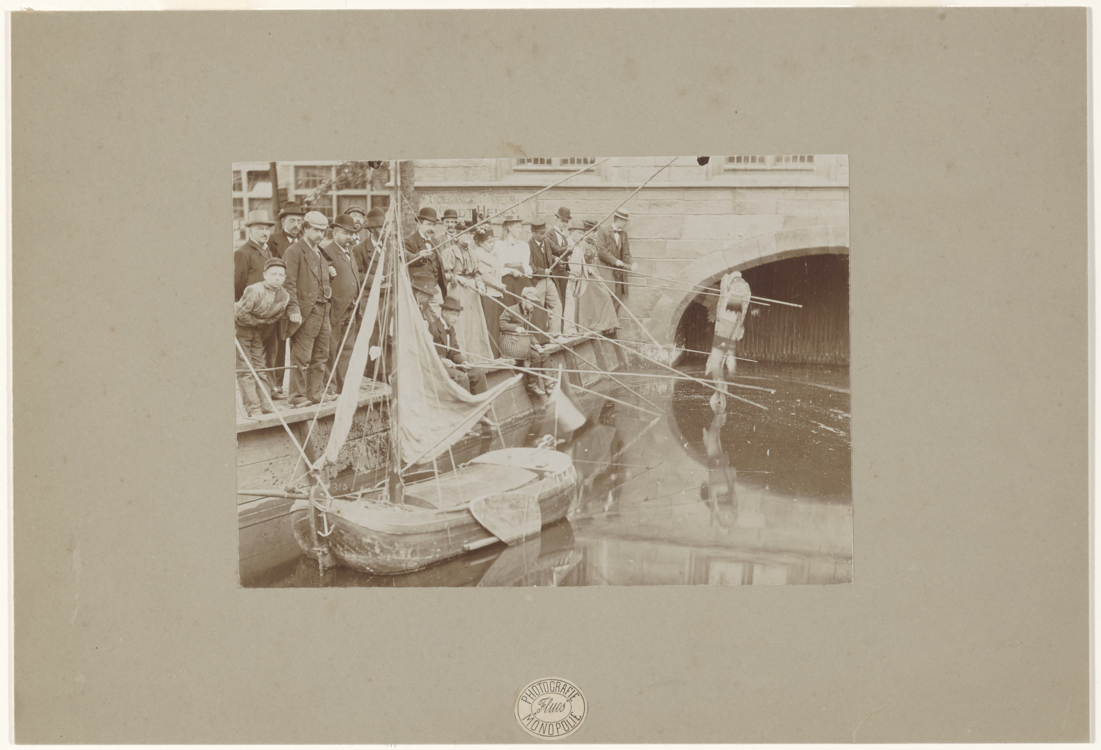 - Een hengelwedtrijd in de Voorstraatshaven bij het stadhuis tijdens de nijverheids- en kunsttentoonstelling Vak en Kunst.