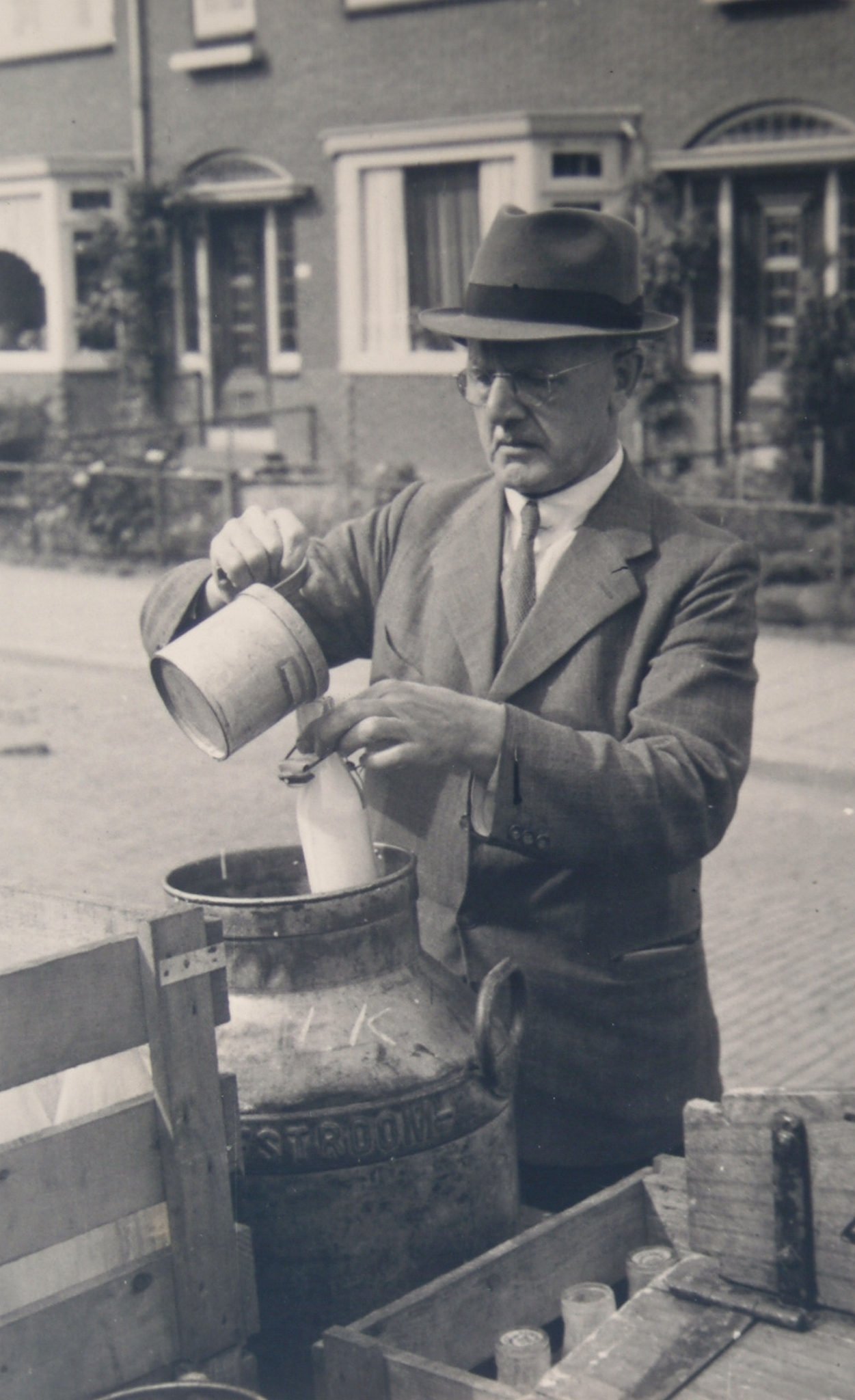 Melkbemonstering door keurmeester J.S. van de Meer van de Keuringsdienst van Waren