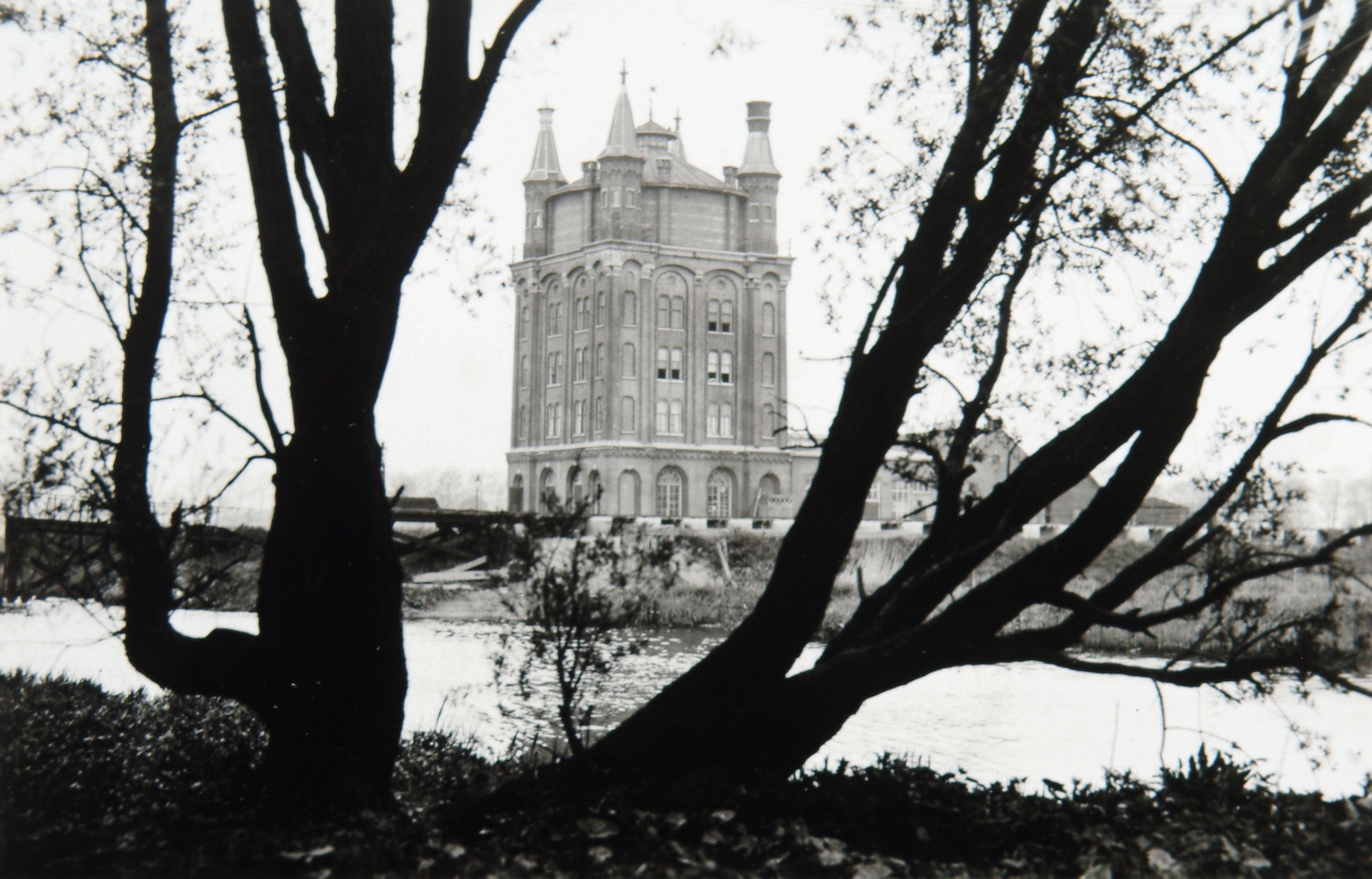 - De in 1933 vijftig jaar oude watertoren aan de Oranjelaan, gezien vanaf de Prins Hendrikbrug, richting Noordendijk. De toren werd in de volksmond apeboom genoemd.