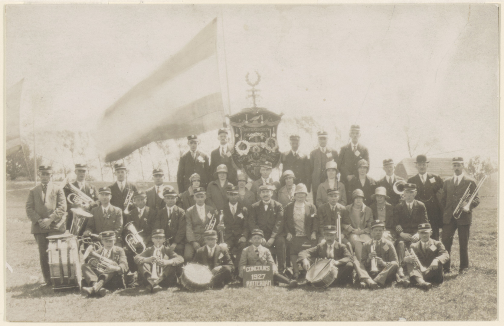 groepsportretten muziekkorpsen vaandels