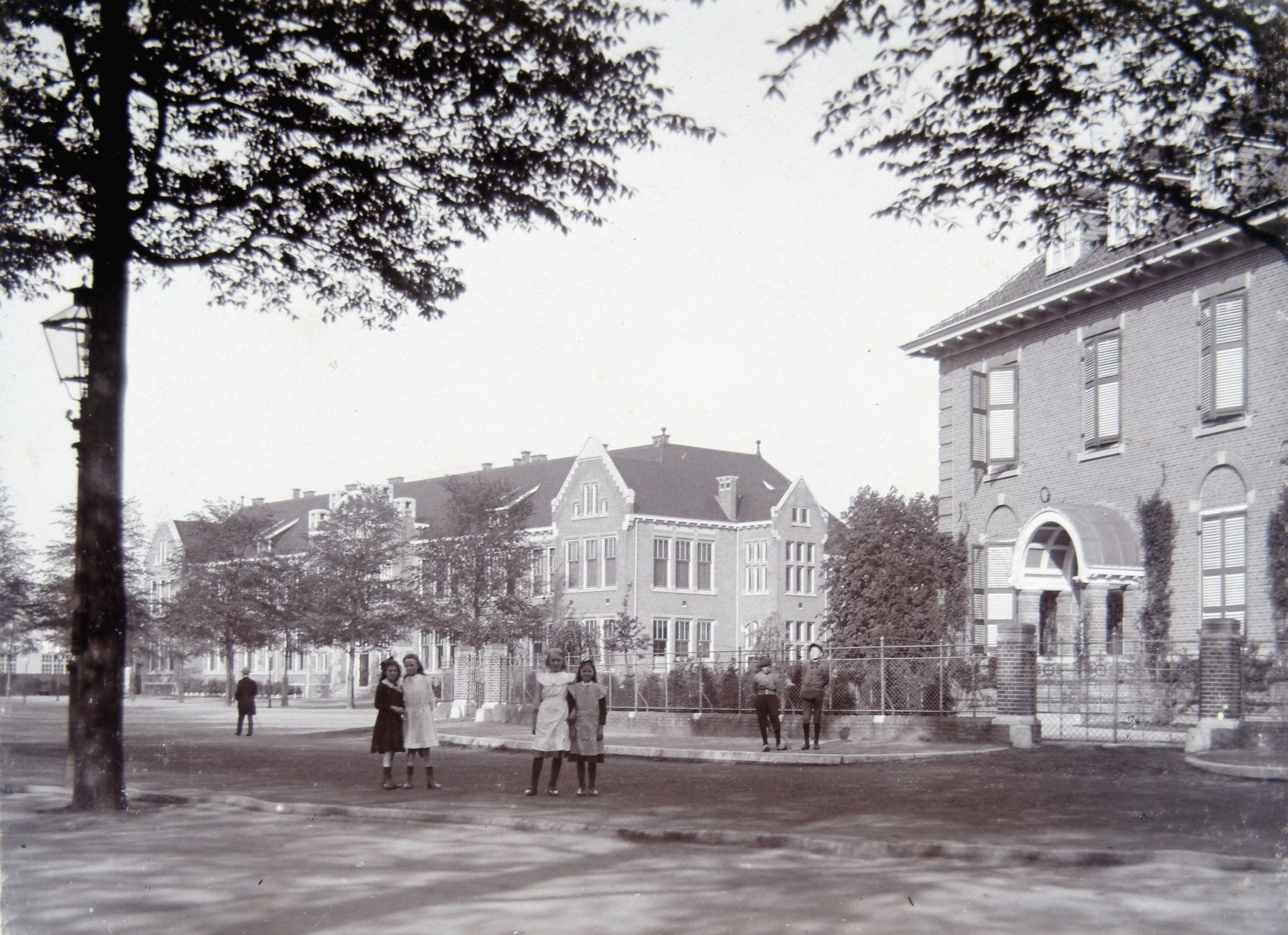 Oranjepark met de Hogere Burgerschool, gezien vanaf de Vrieseweg.