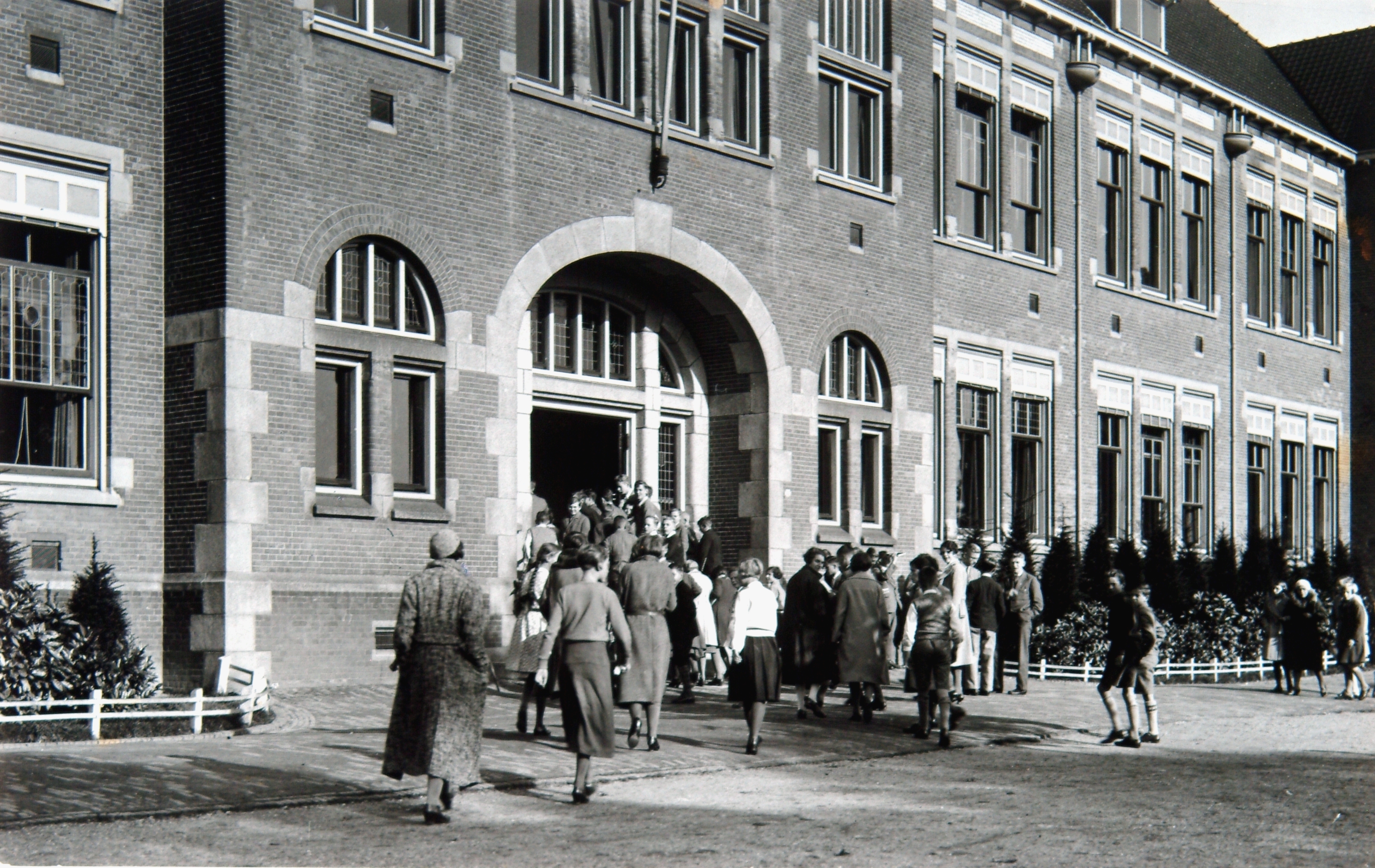 Ingang van de Hogere Burgerschool aan de westzijde van het Oranjepark.