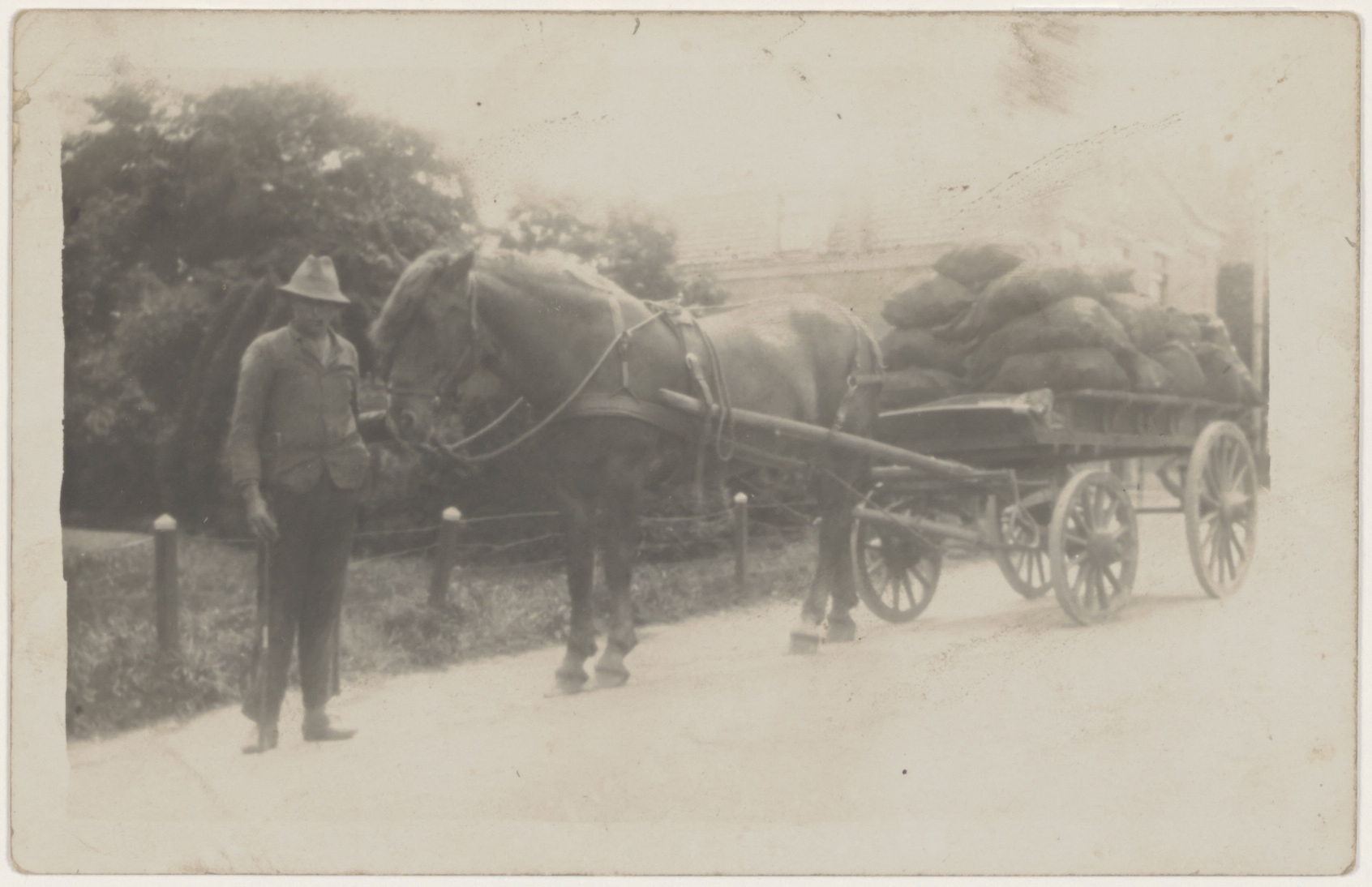 - Deze foto van een boer met zijn paard en wagen is gemaakt door een straatfotograaf. Men kon de foto direct meenemen en dan moest men hem 1 uur in het water leggen.