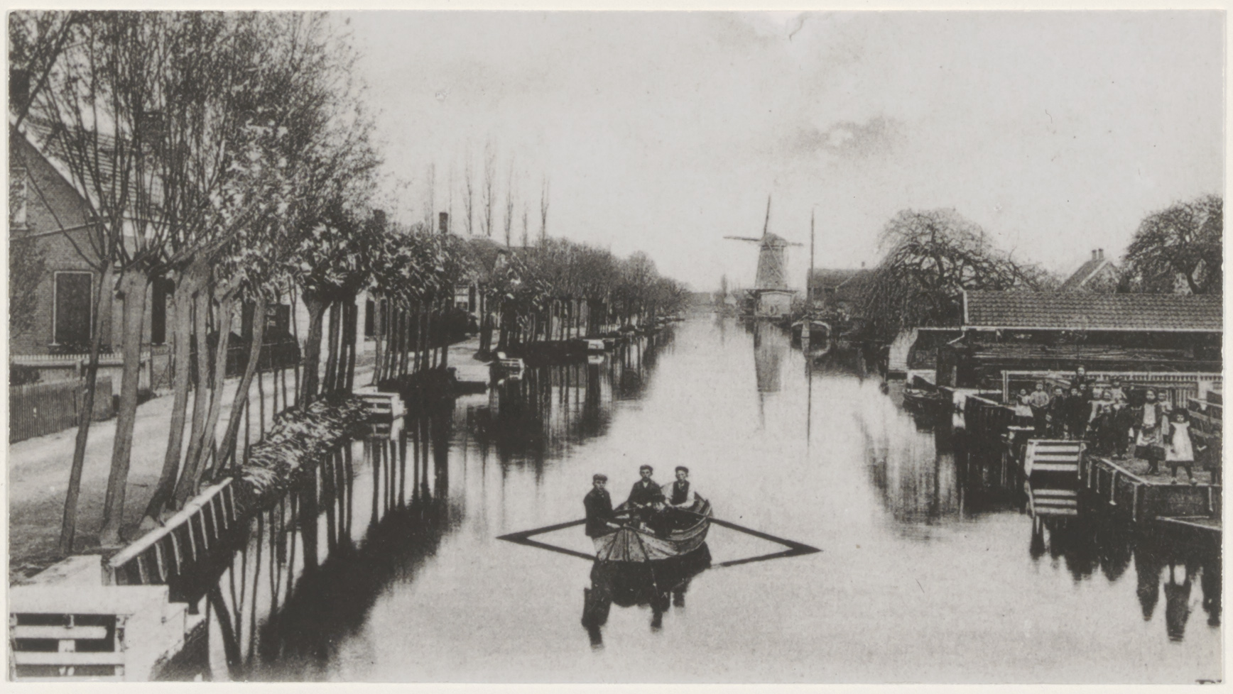 - De Graafstroom in Bleskensgraaf. Links de Dorpsstraat, rechts de Heulenslag. Molen De Vriendschap op de achtergrond.