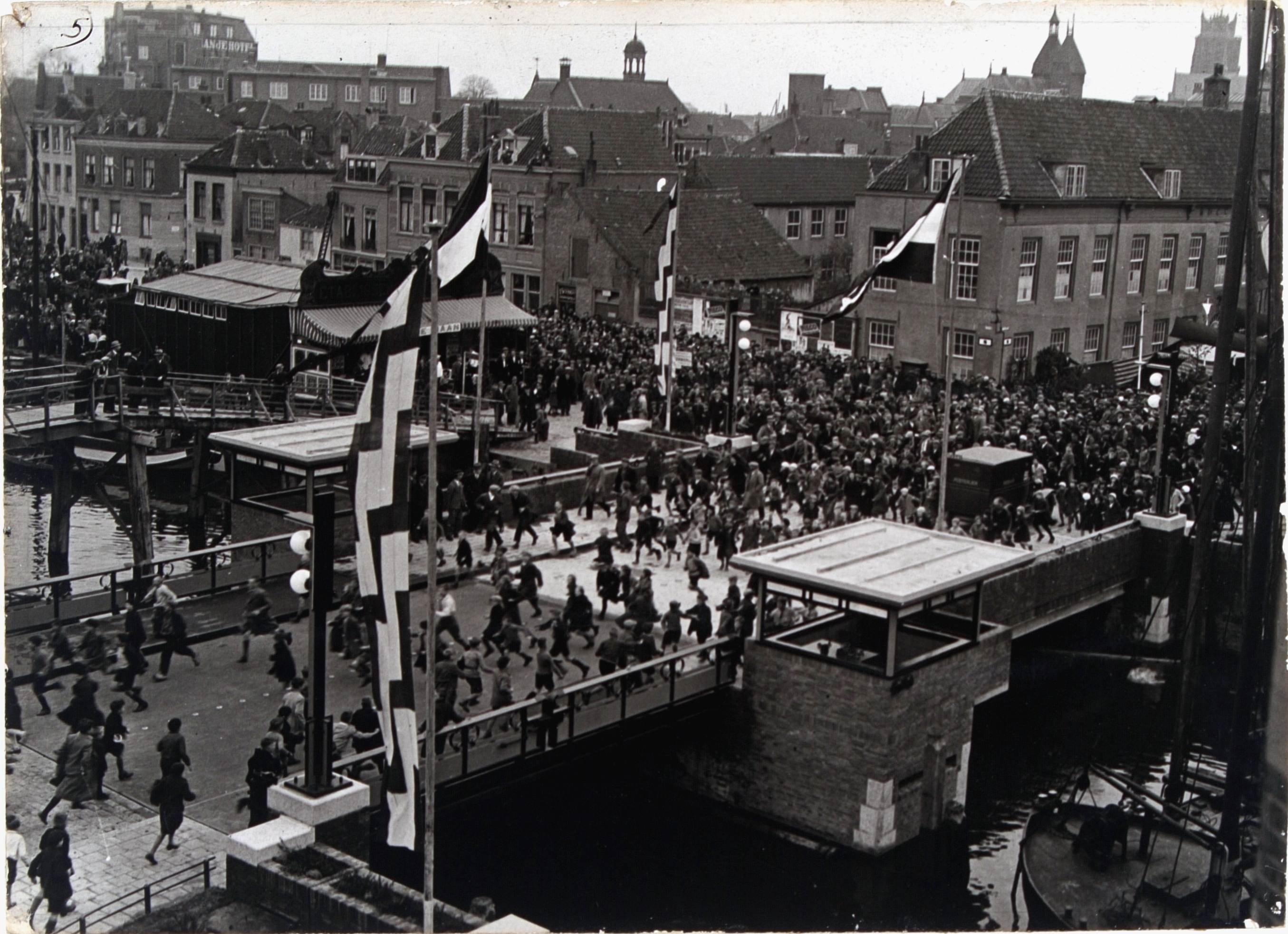 Drukte tijdens de opening Vriesebrug na de herbouw in 1932