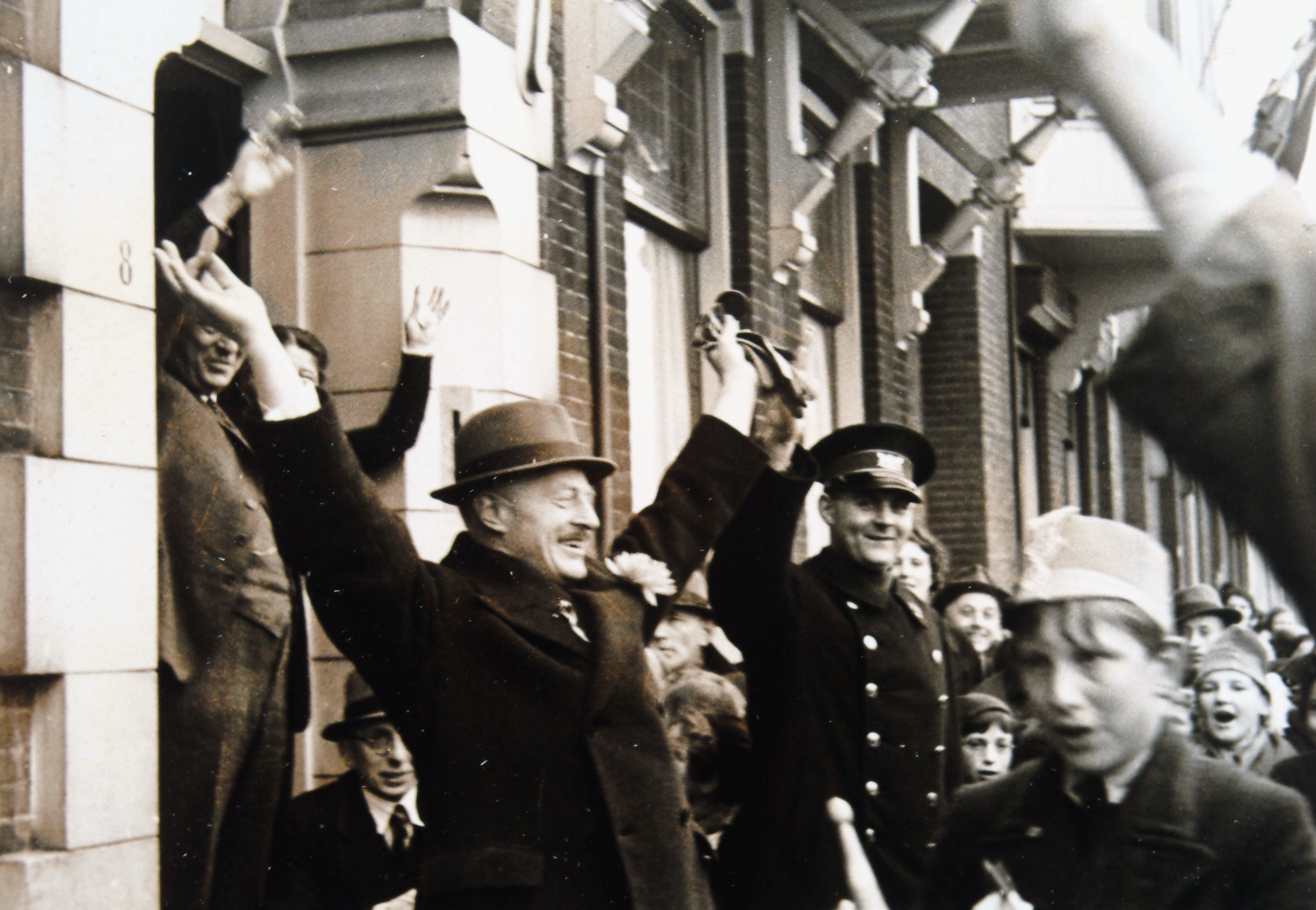- Wat is de heer Sommer (leraar H.B.S.) blij met de geboorte van prinses Beatrix. Hij staat voor het huis Dr. J.J. Prins (directeur H.B.S.) op de Buiten Walevest.