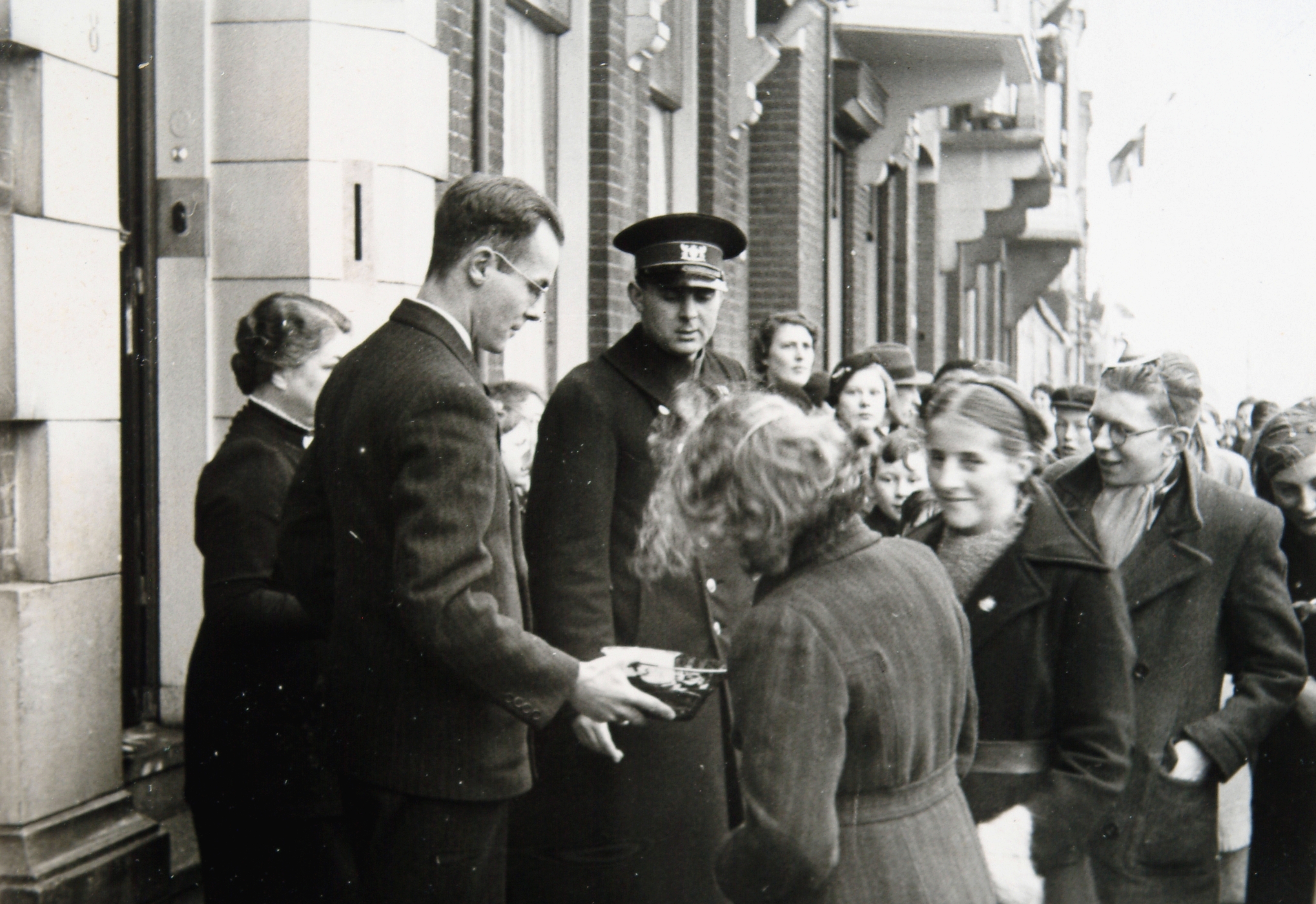 - De zoon van Dr. J.J. Prins - directeur van de H.B.S. - trakteert op beschuit met muisjes voor de geboorte van Prinses Beatrix bij zijn woning aan de Buiten Walevest.