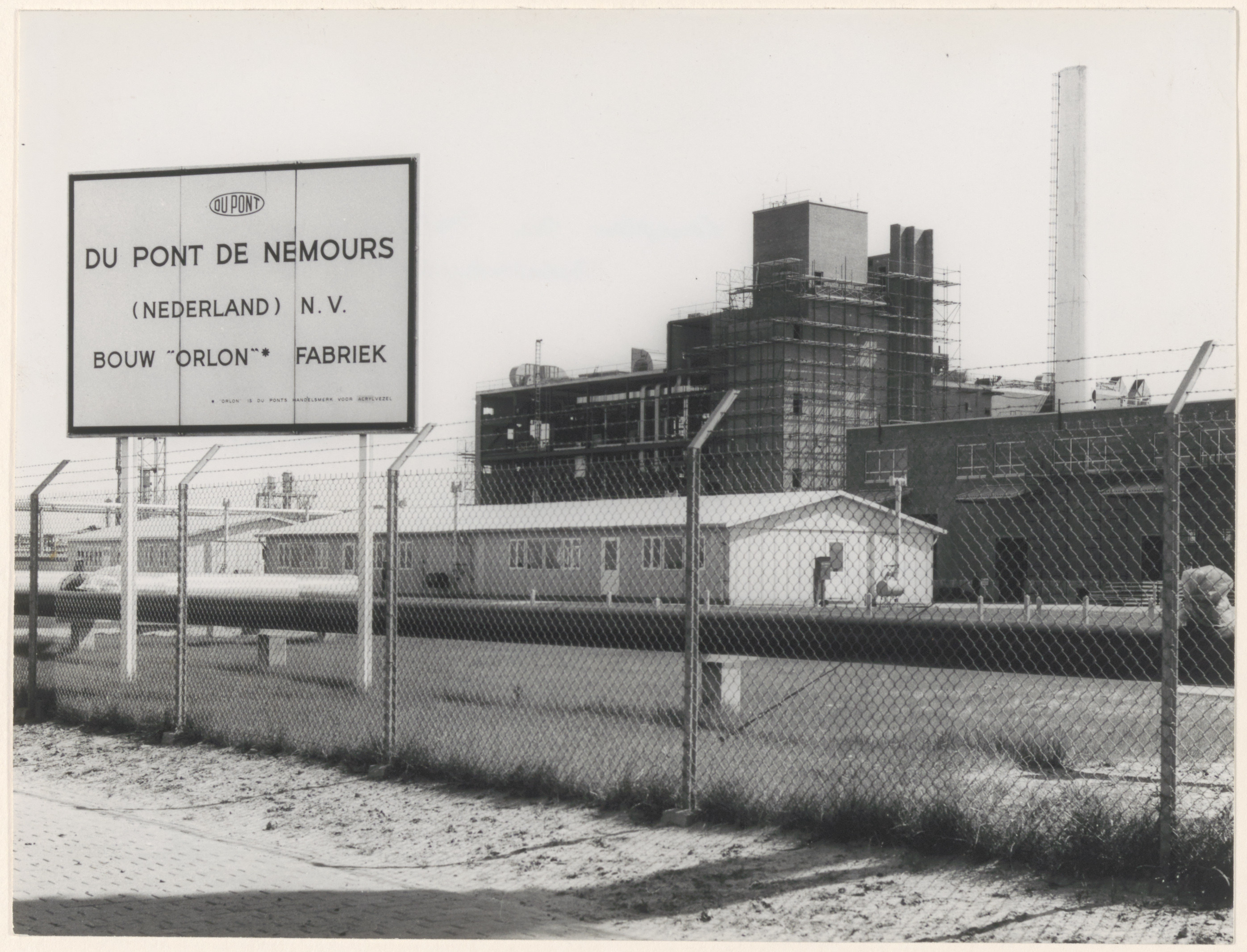 - De orlonfabriek van Du Pont de Nemours aan de Baanhoekweg in aanbouw.