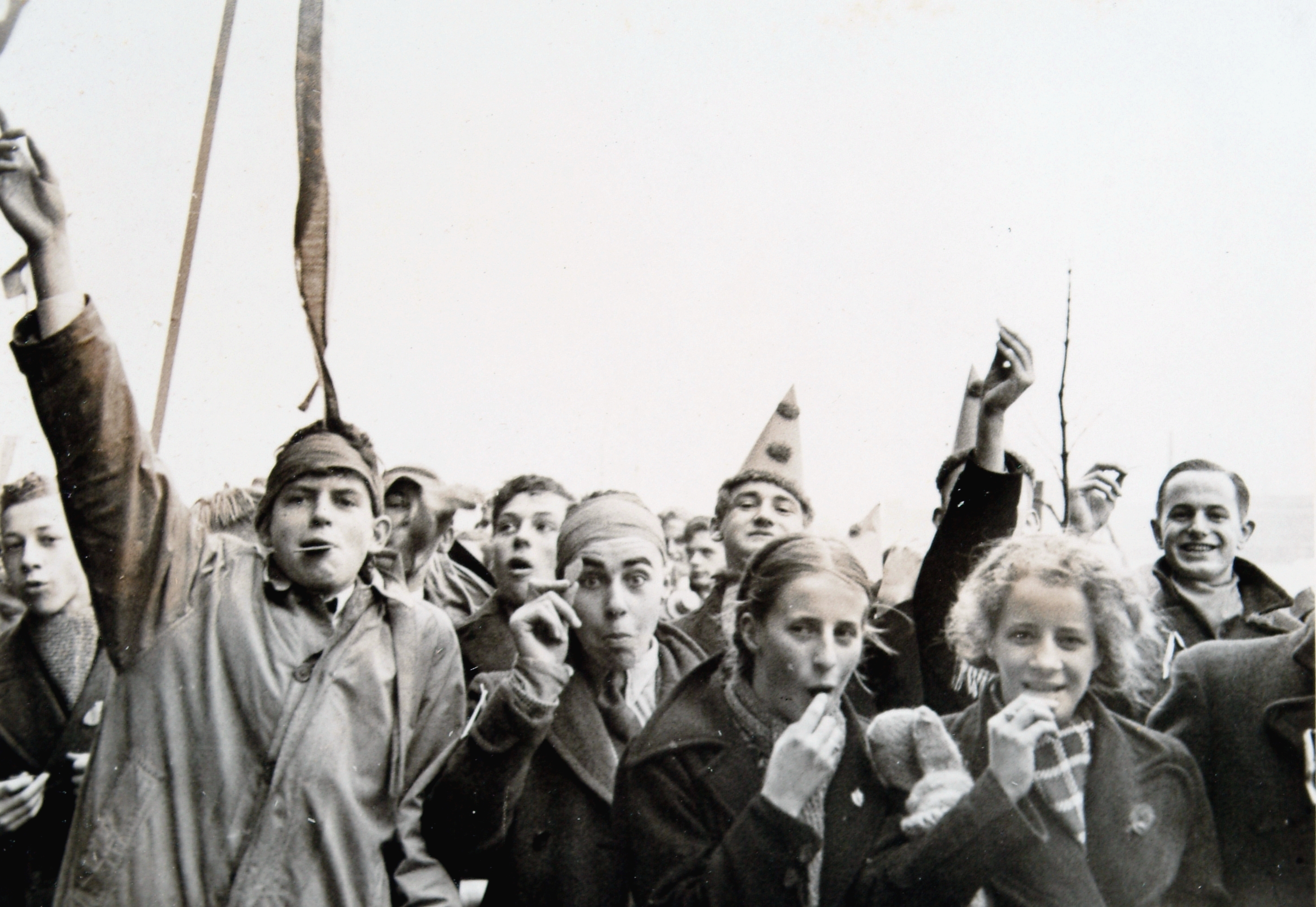 - Feestende H.B.S.'ers bij de geboorte van prinses Beatrix.